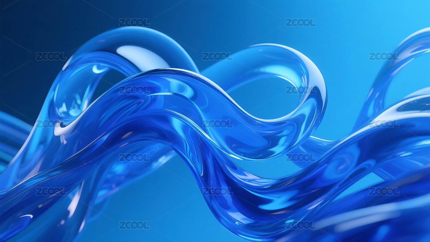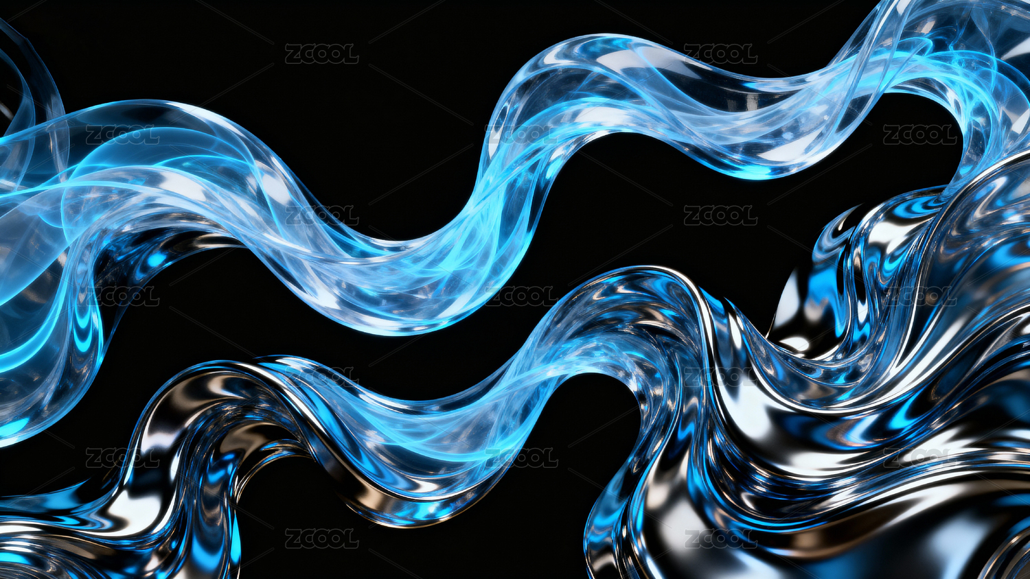 蓝色波浪形透明材质艺术表现
