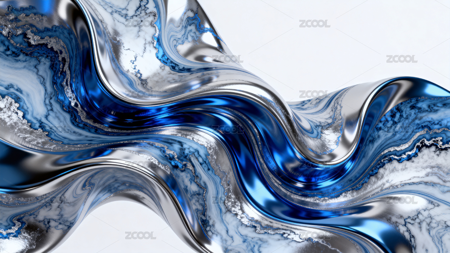 蓝银交织流动纹理艺术图案