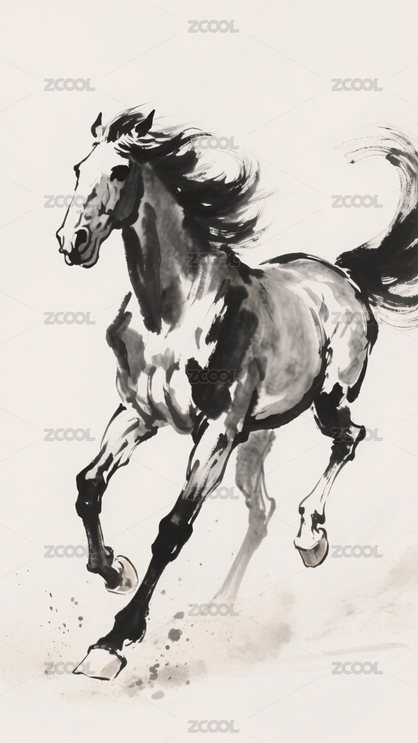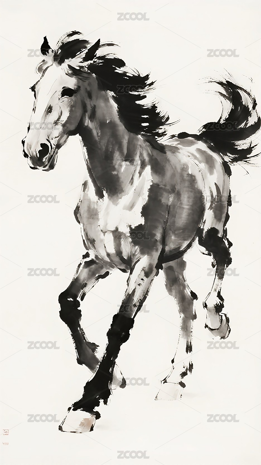 十二生肖瑞兽马儿兴奋站立岩彩水墨插画
