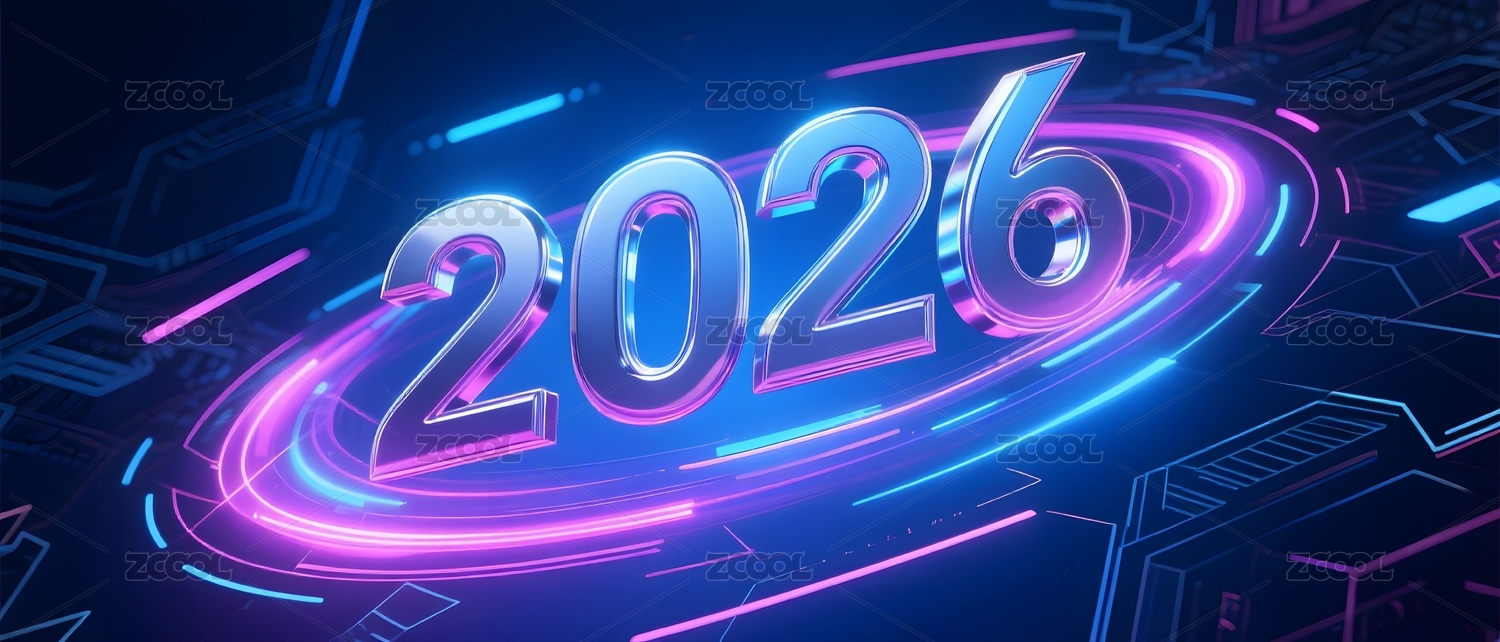 数字,2026,科技,线条,光效,金属,网格,发光,立体,图形
