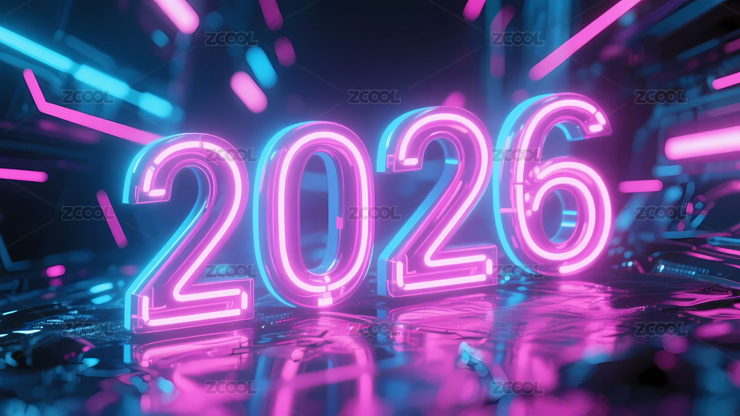 数字,2026,科技,线条,金属,圆点,网格,发光,立体,背景