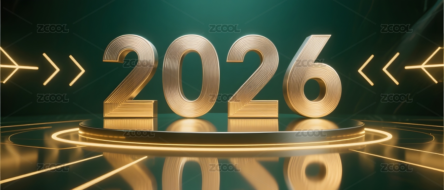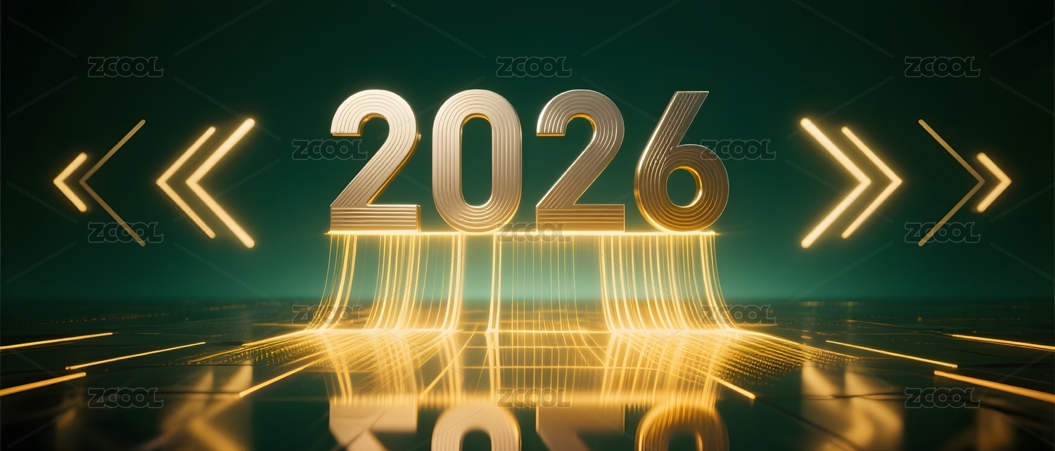 数字,2026,金属,立体,图形,背景,反光,设计,反射,箭头