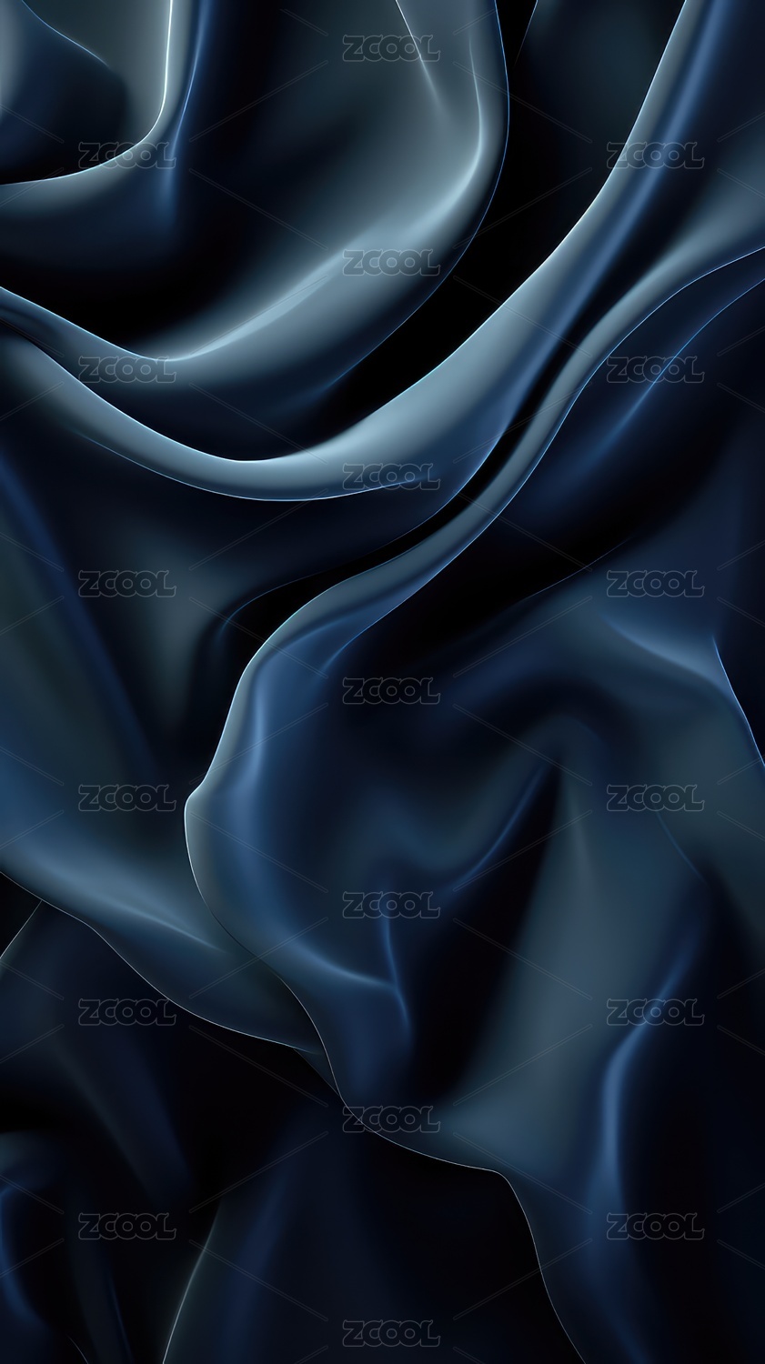 深蓝色绸缎质感褶皱光影交织