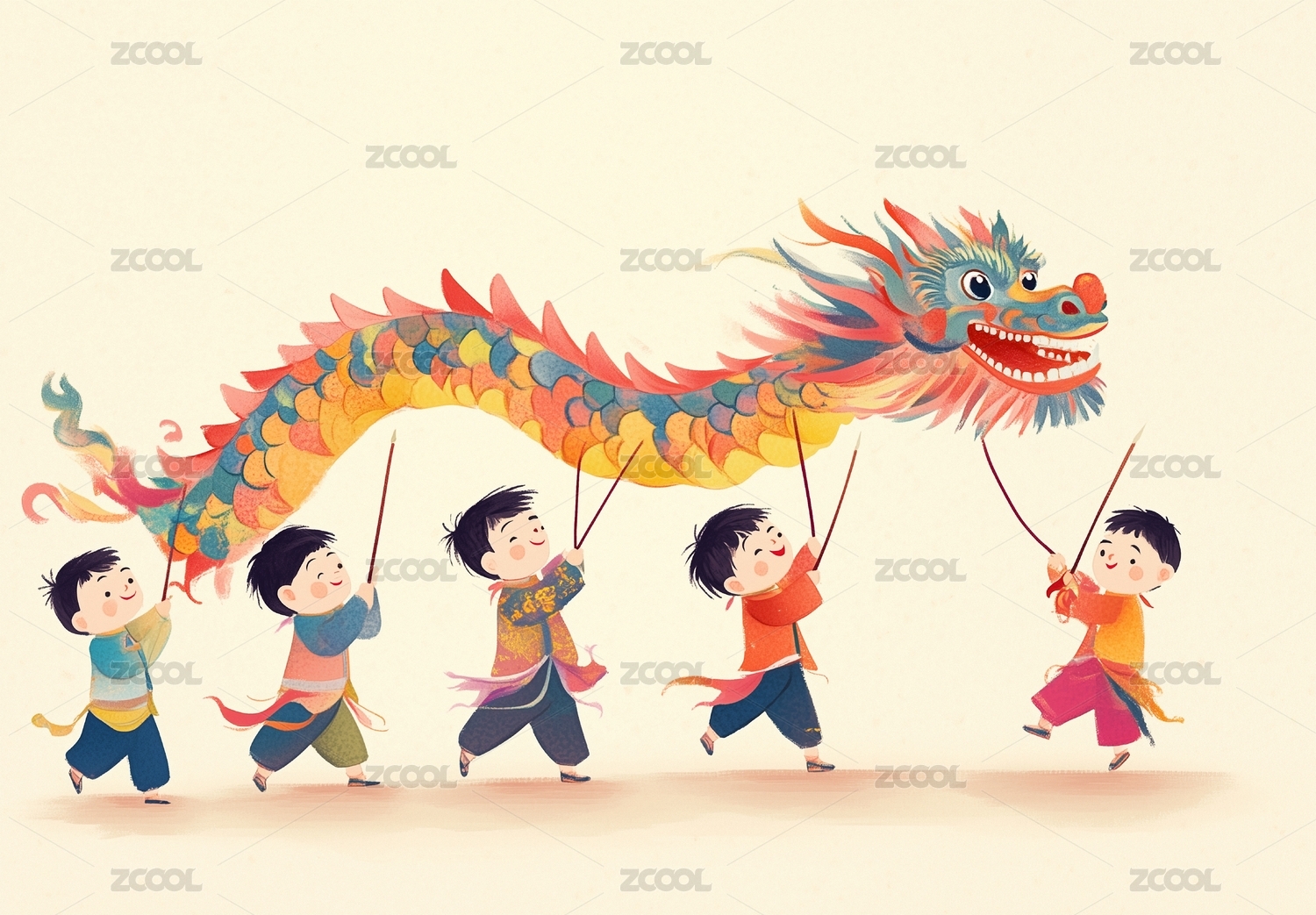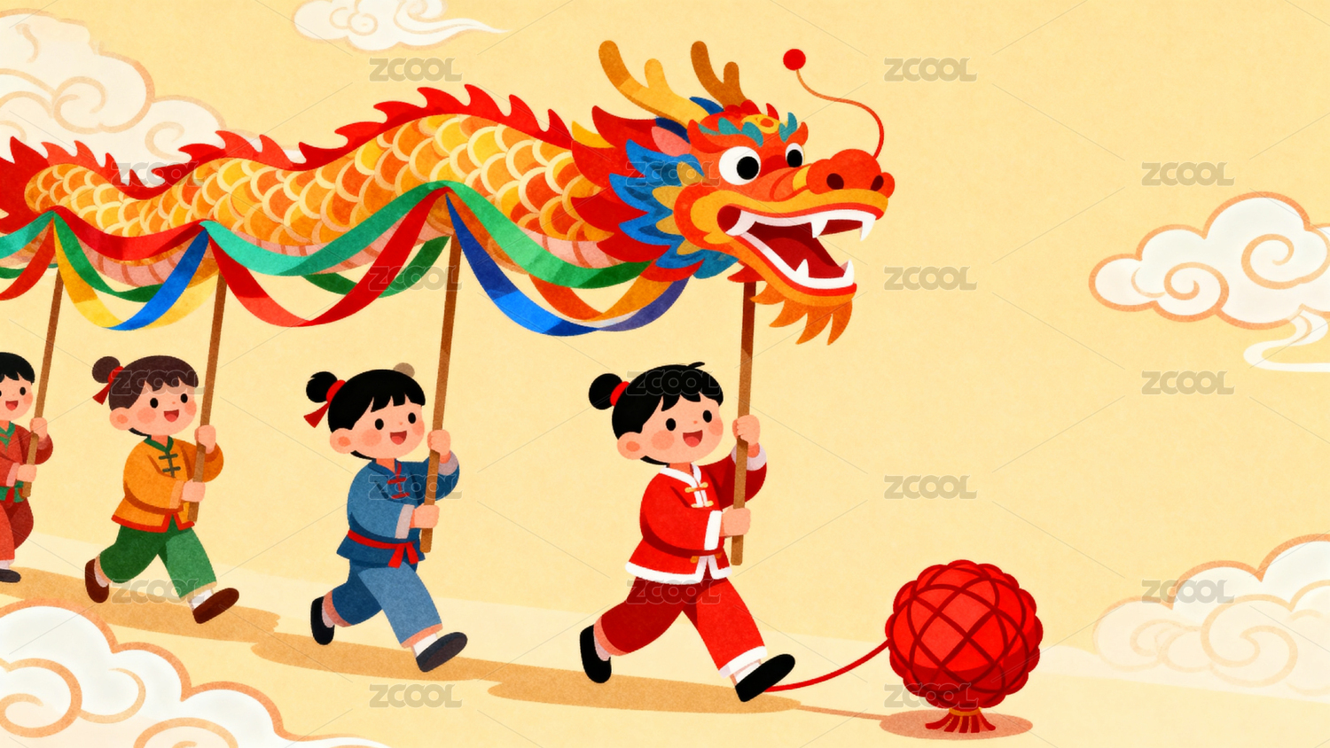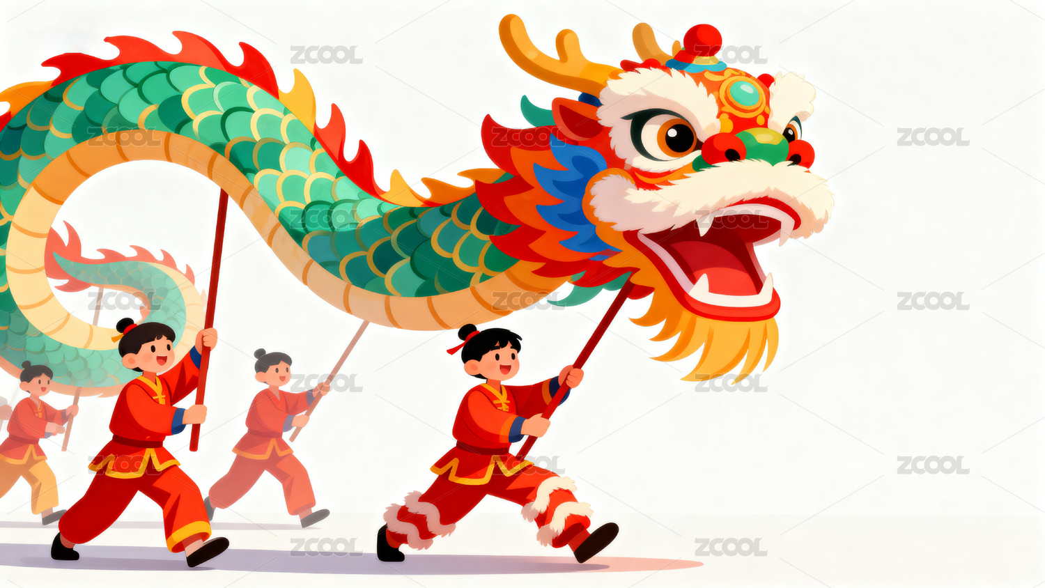 儿童舞龙庆祝节日场景