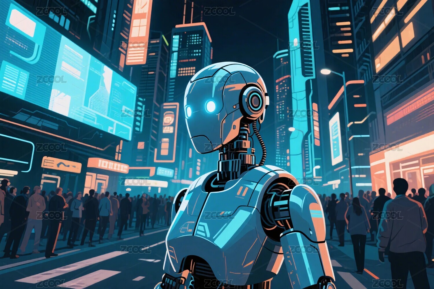 机器人,都市,街道,科技,未来,城市,行人,霓虹,现代,建筑