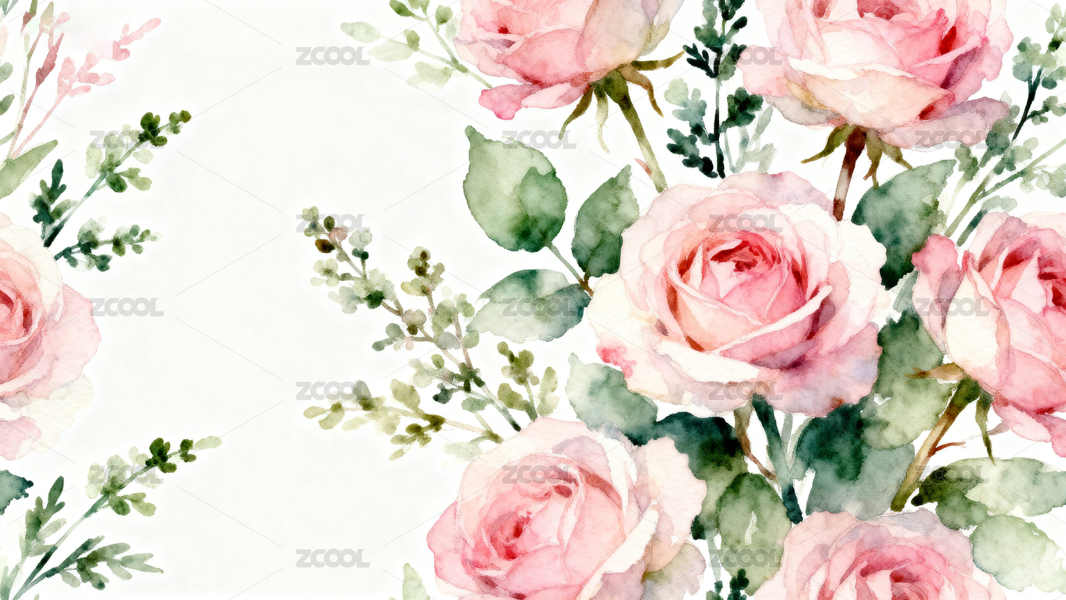 淡雅水彩玫瑰花图案