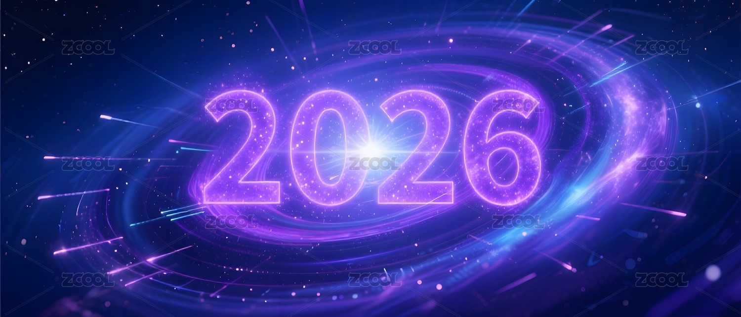 数字,2026,霓虹,渐变,紫色,蓝色,线条,光效,轮廓,背景