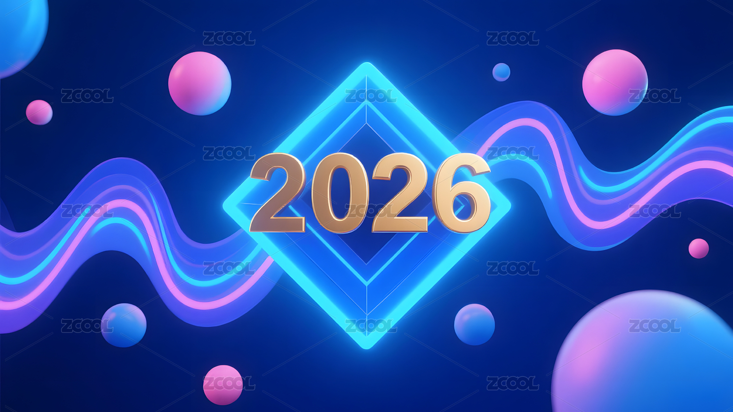 数字,2026,波浪,曲线,渐变,背景,设计,层次,视觉,流动