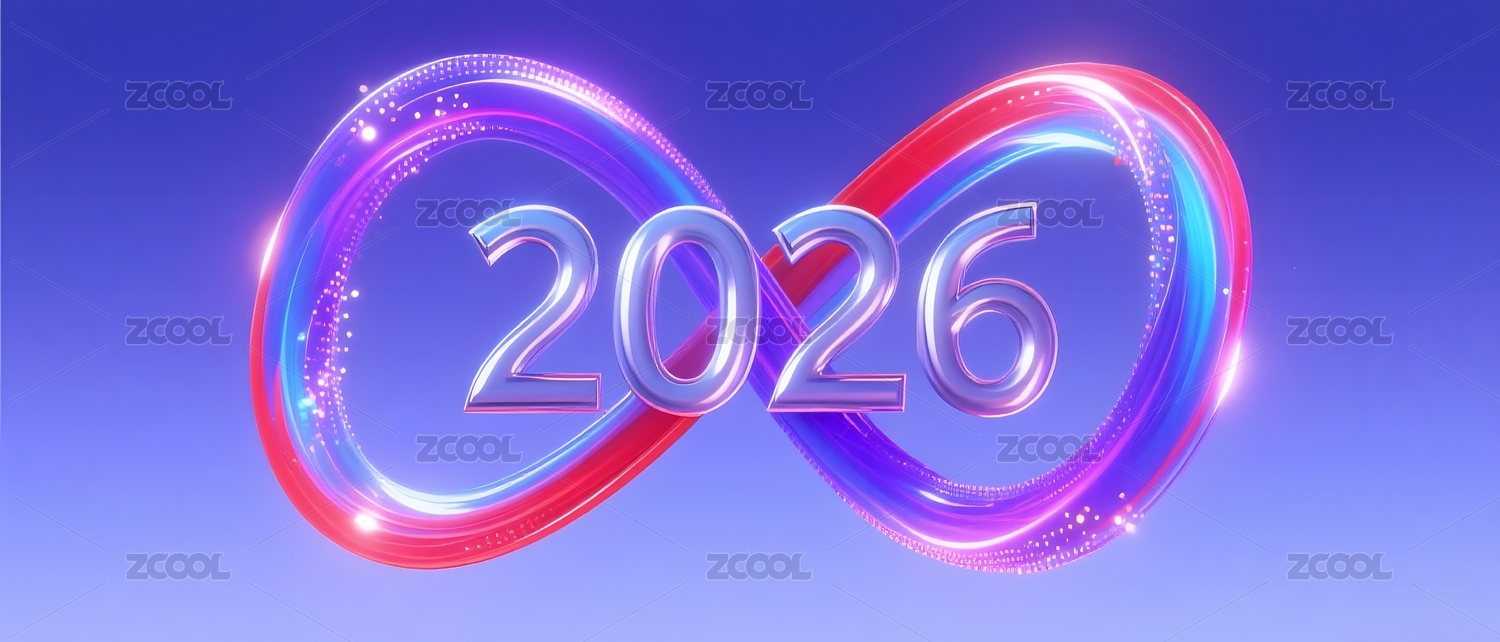 2026年数字与彩色光带环绕设计