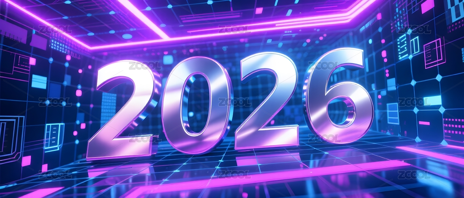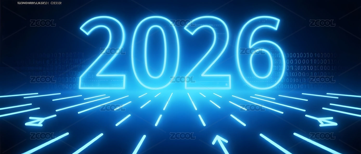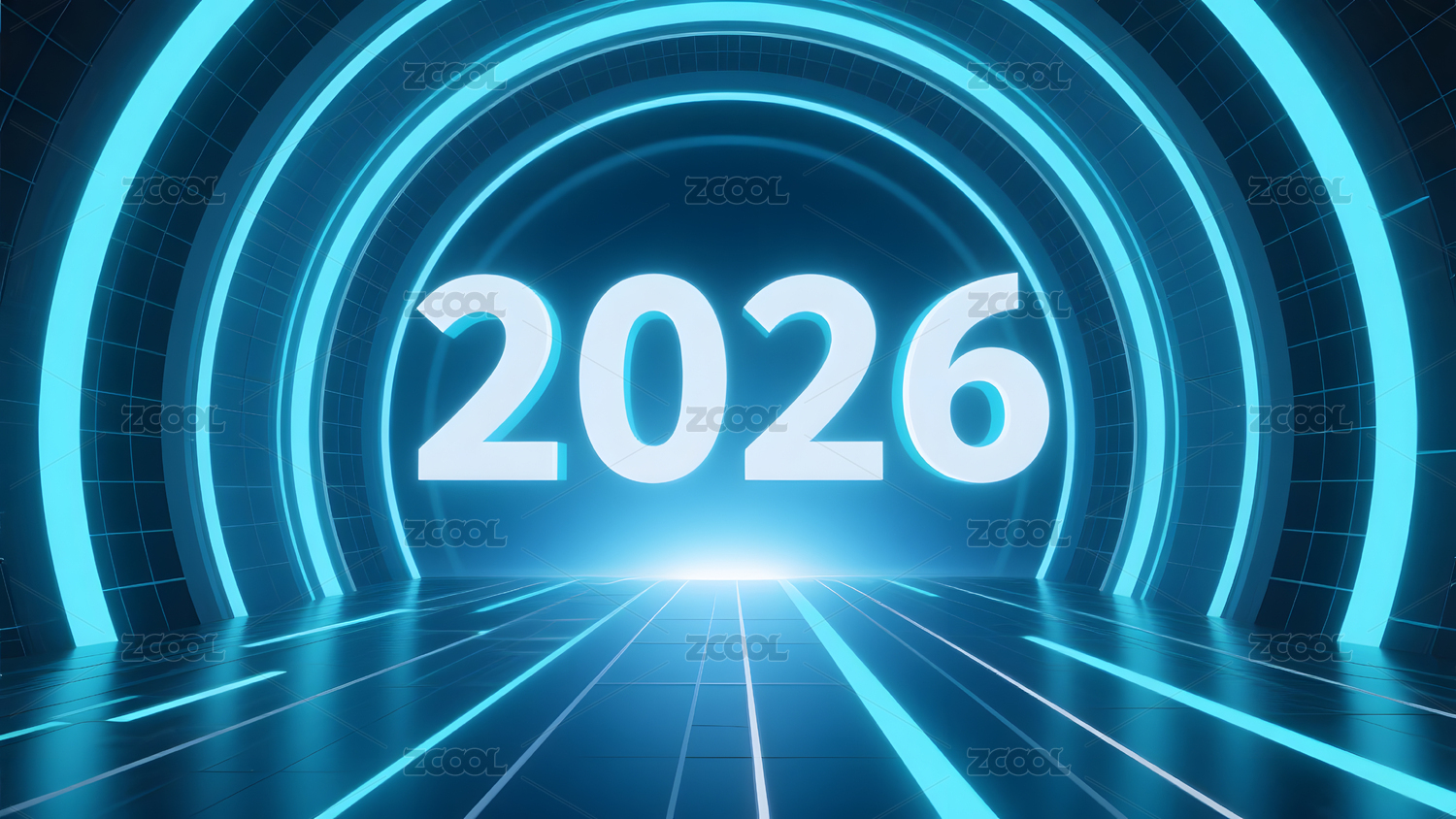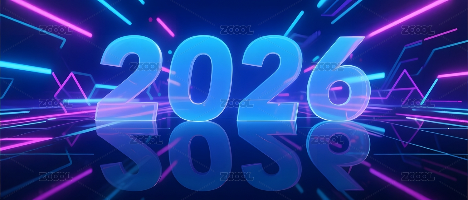 数字,2026,光线,渐变,背景,设计,发光,视觉,对称,对比