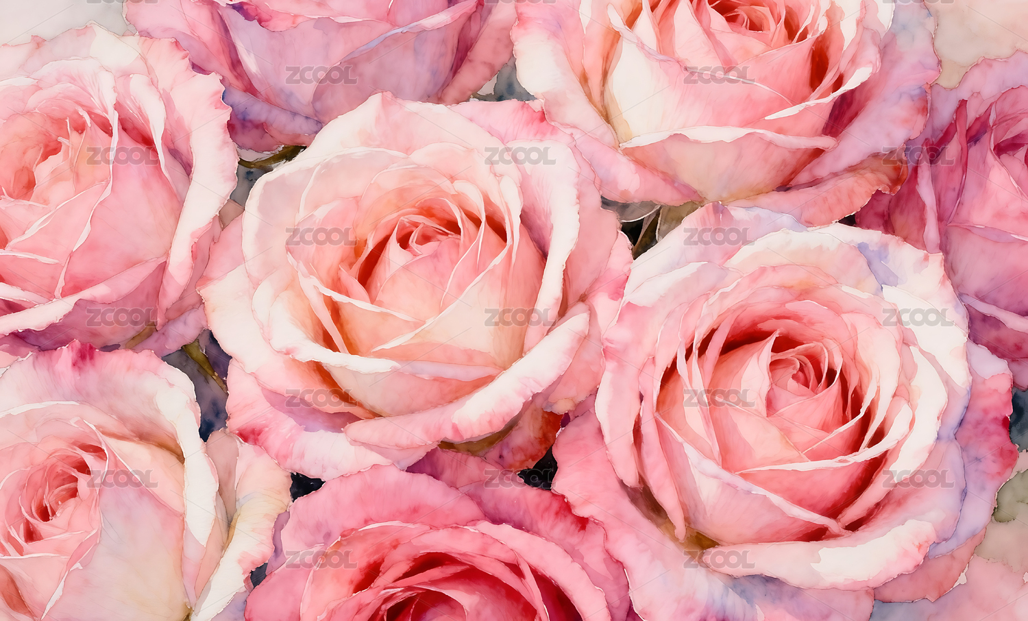 水彩风格玫瑰花背景壁纸