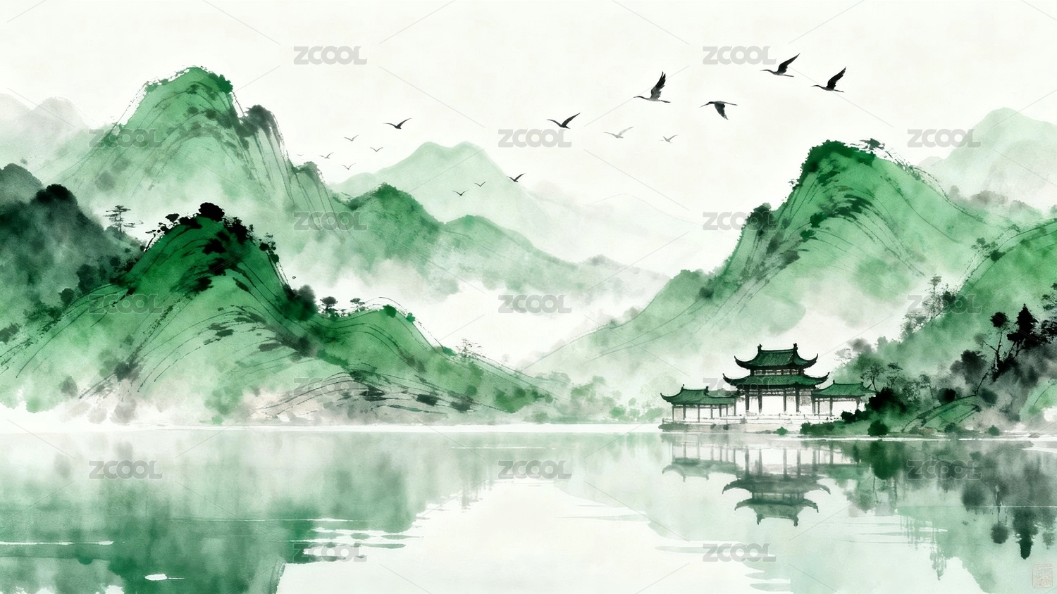 山水景色青绿装饰场景