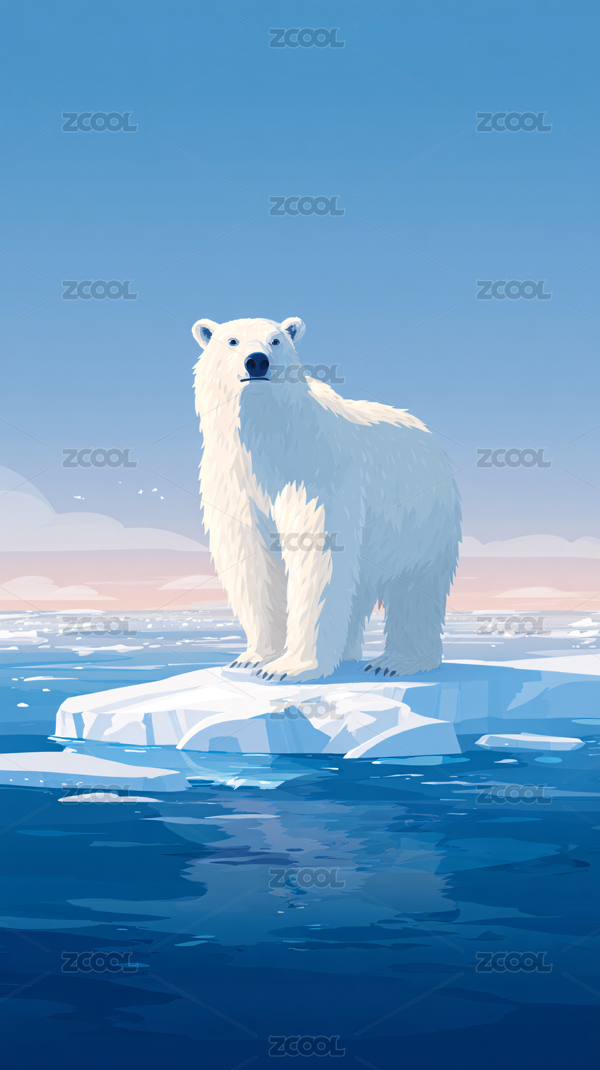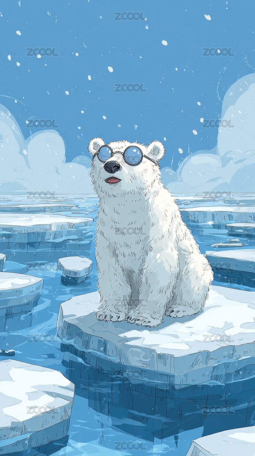 主视觉,商业,壁纸,卡通,北极熊,冰雪,场景,可爱,白色,动物