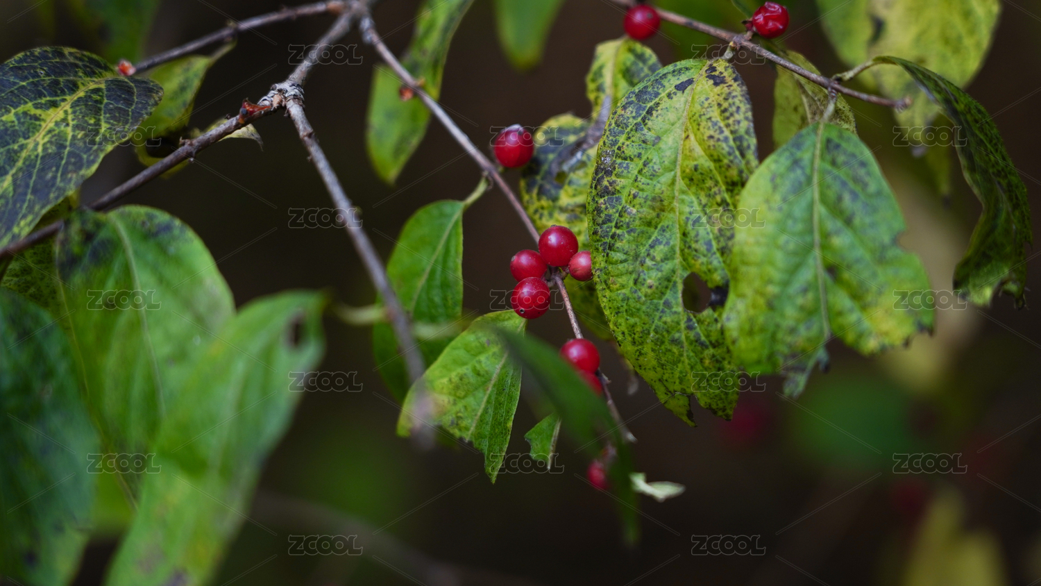 秋天的绿叶与红色的果子