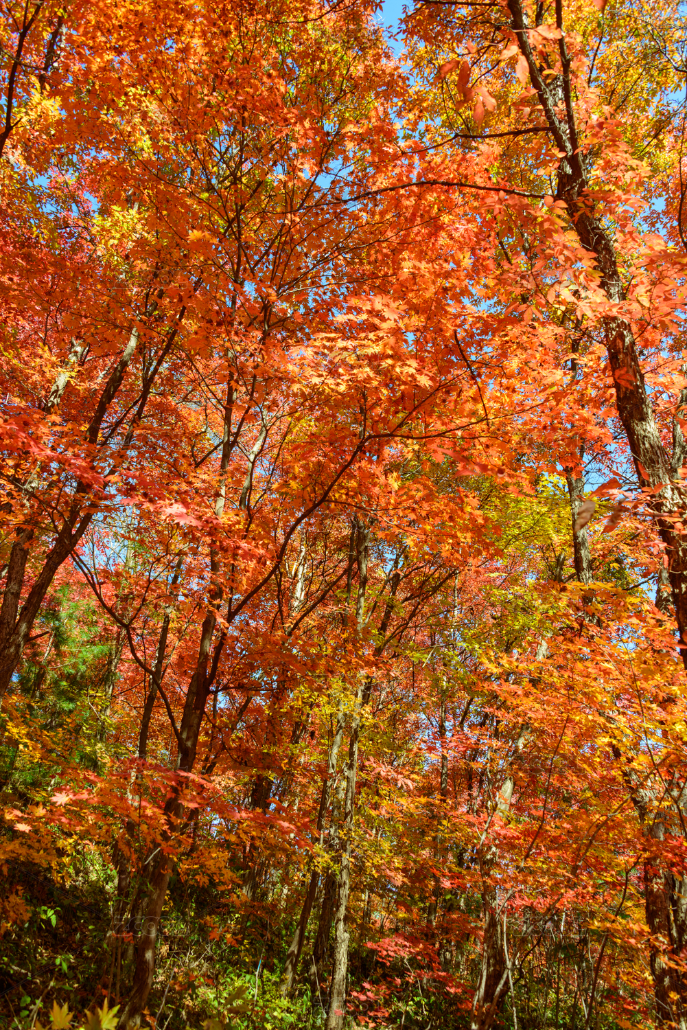 沈阳本溪老边沟,秋日山林红叶枫树景观