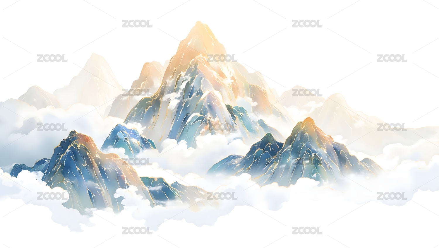 自然,山脉,云海,天空,远景,山峰,雾气,层次,光影,静谧