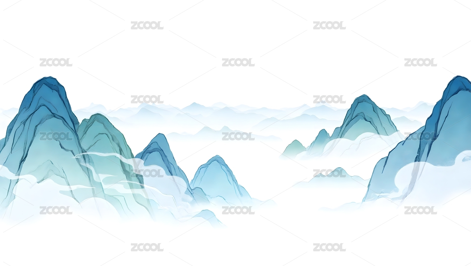 自然,山峰,云雾,层叠,淡雅,水墨,景观,朦胧,绿色,背景