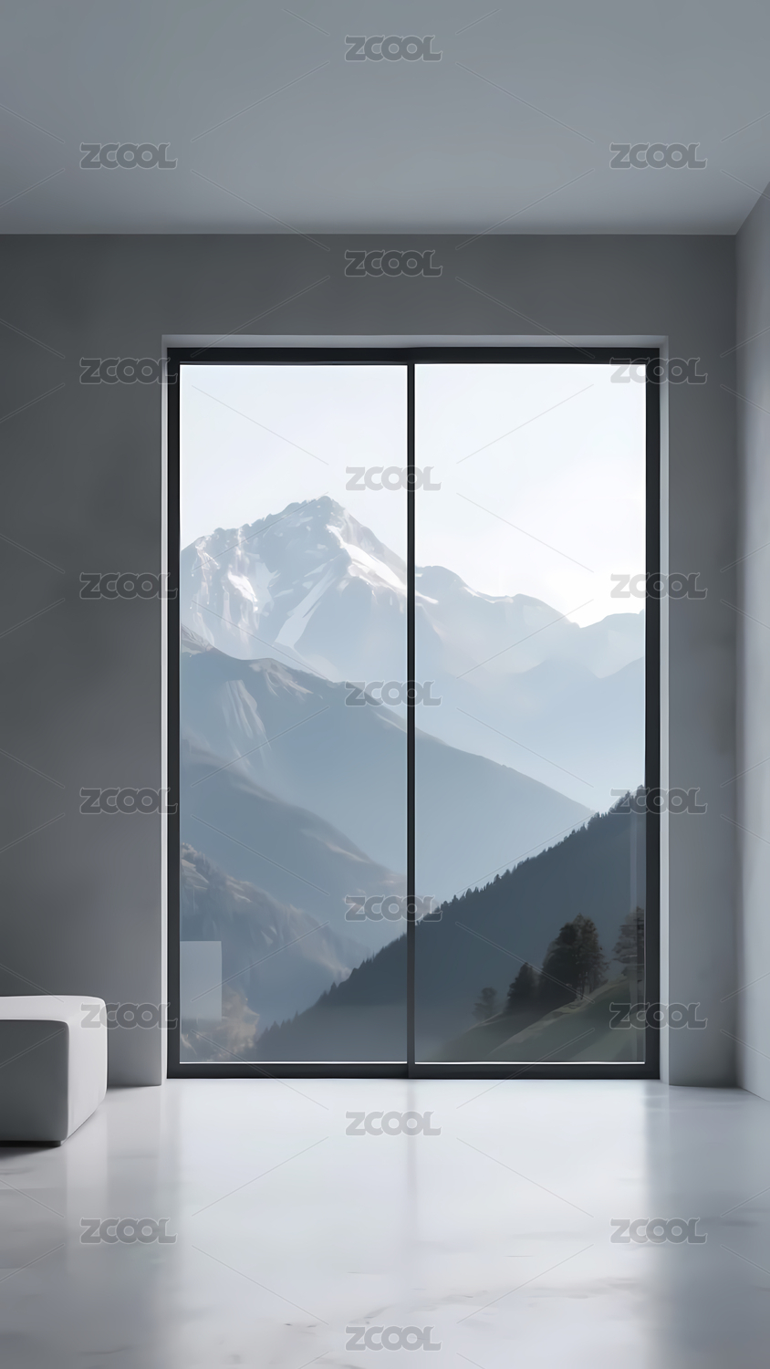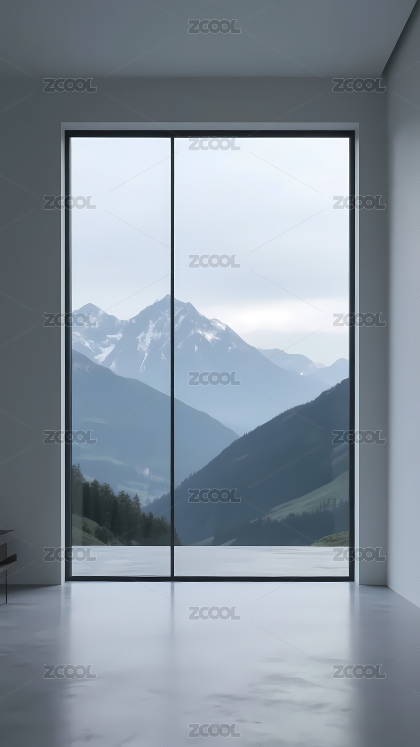 自然,简洁,宁静,明亮,窗户,蓝天,远山,室内,开阔,视野