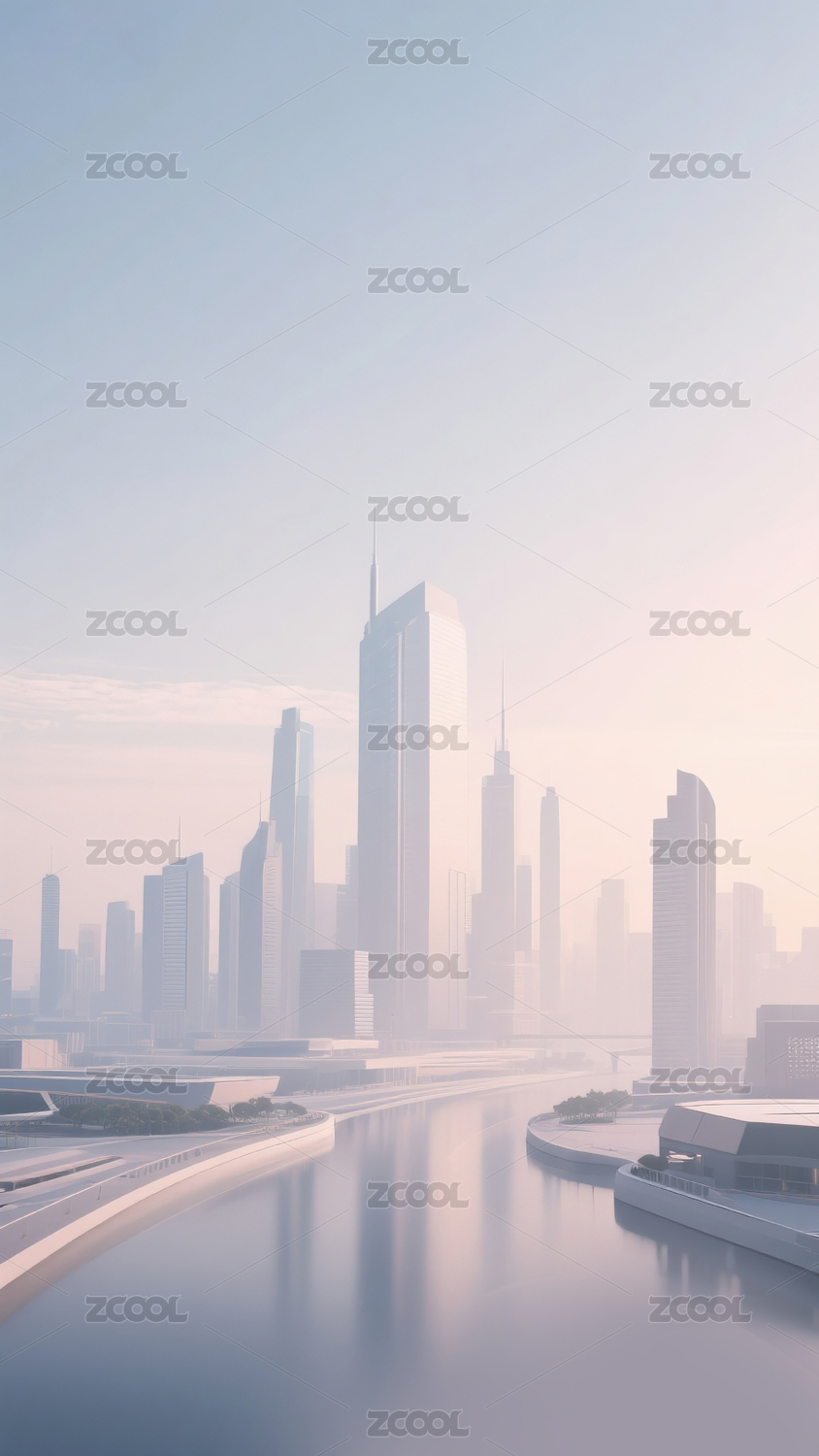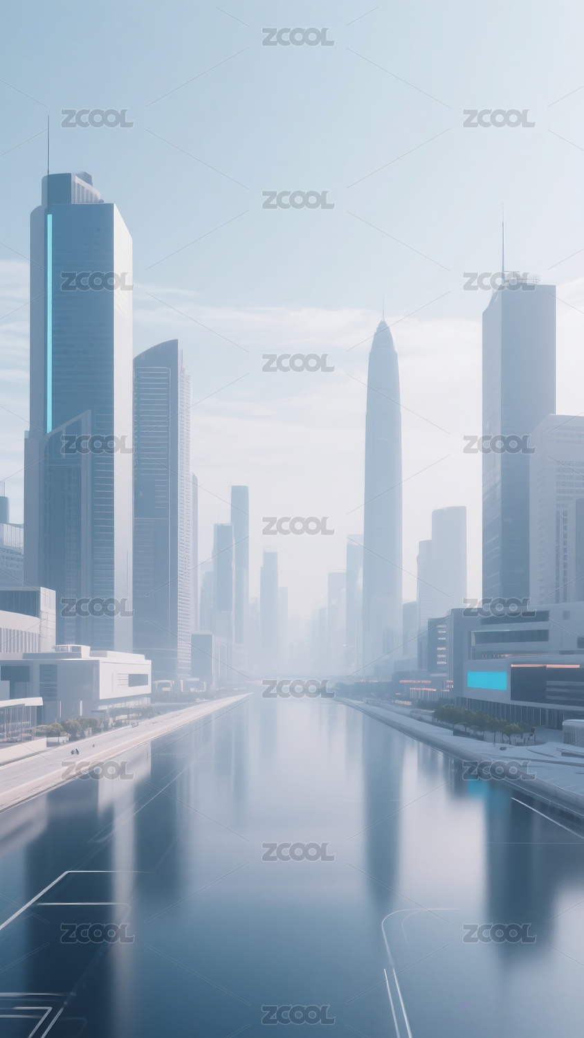 未来感城市天际线倒影