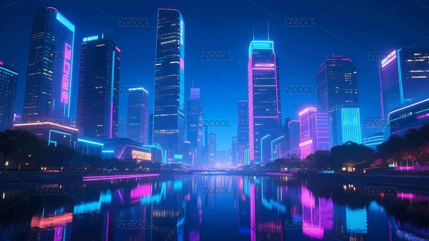 蓝紫霓虹夜晚城市