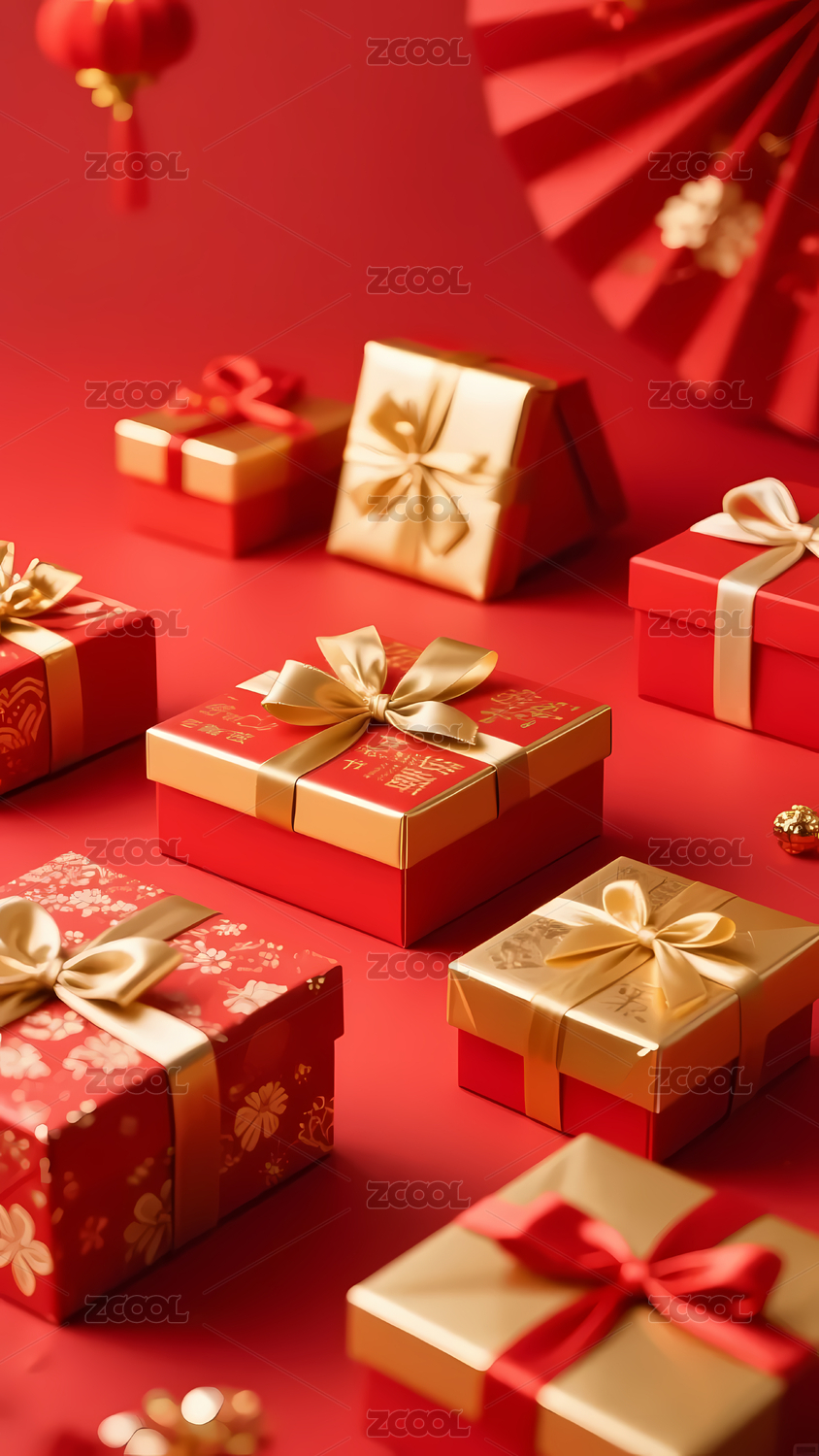 红色,金色,明亮,装饰,礼物,包装,蝴蝶结,花纹,喜庆,精致