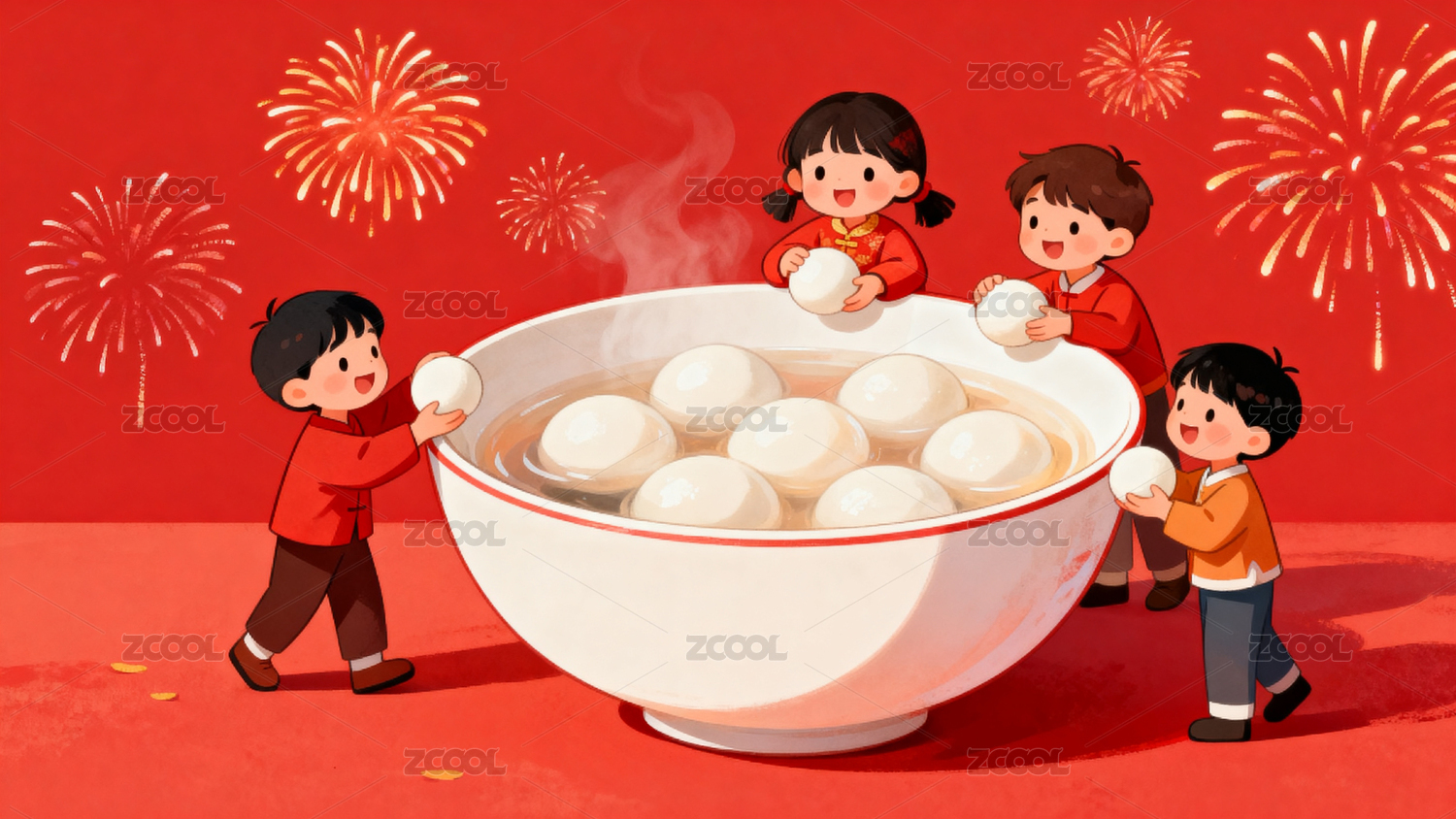 喜庆,传统,节日,红色,挂饰,灯笼,团圆,孩童,云朵,枝条