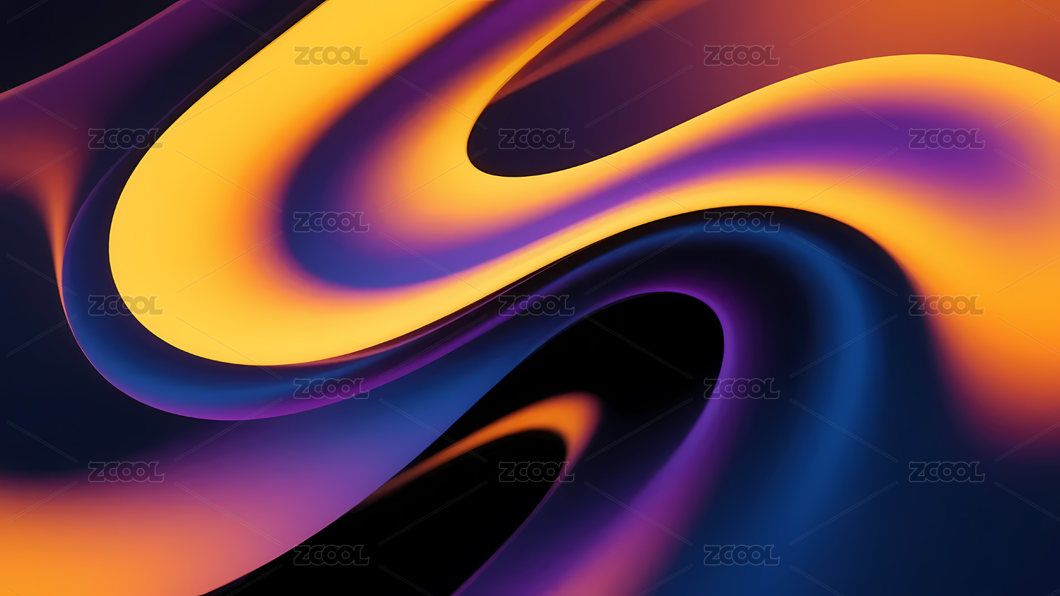 蓝橙波浪渐变和谐曲线