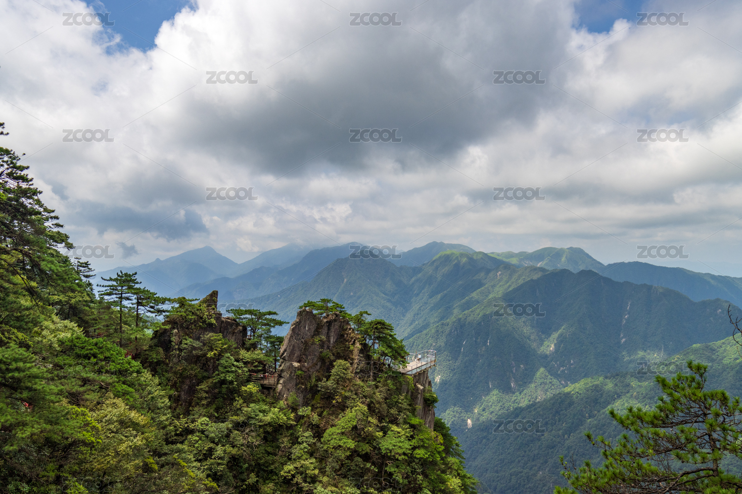 江西武功山羊狮慕景区山峦叠嶂间的观景台