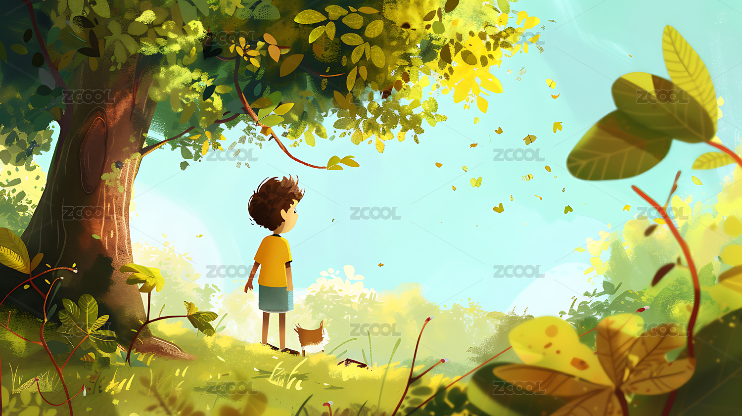 儿童插画女孩与大自然