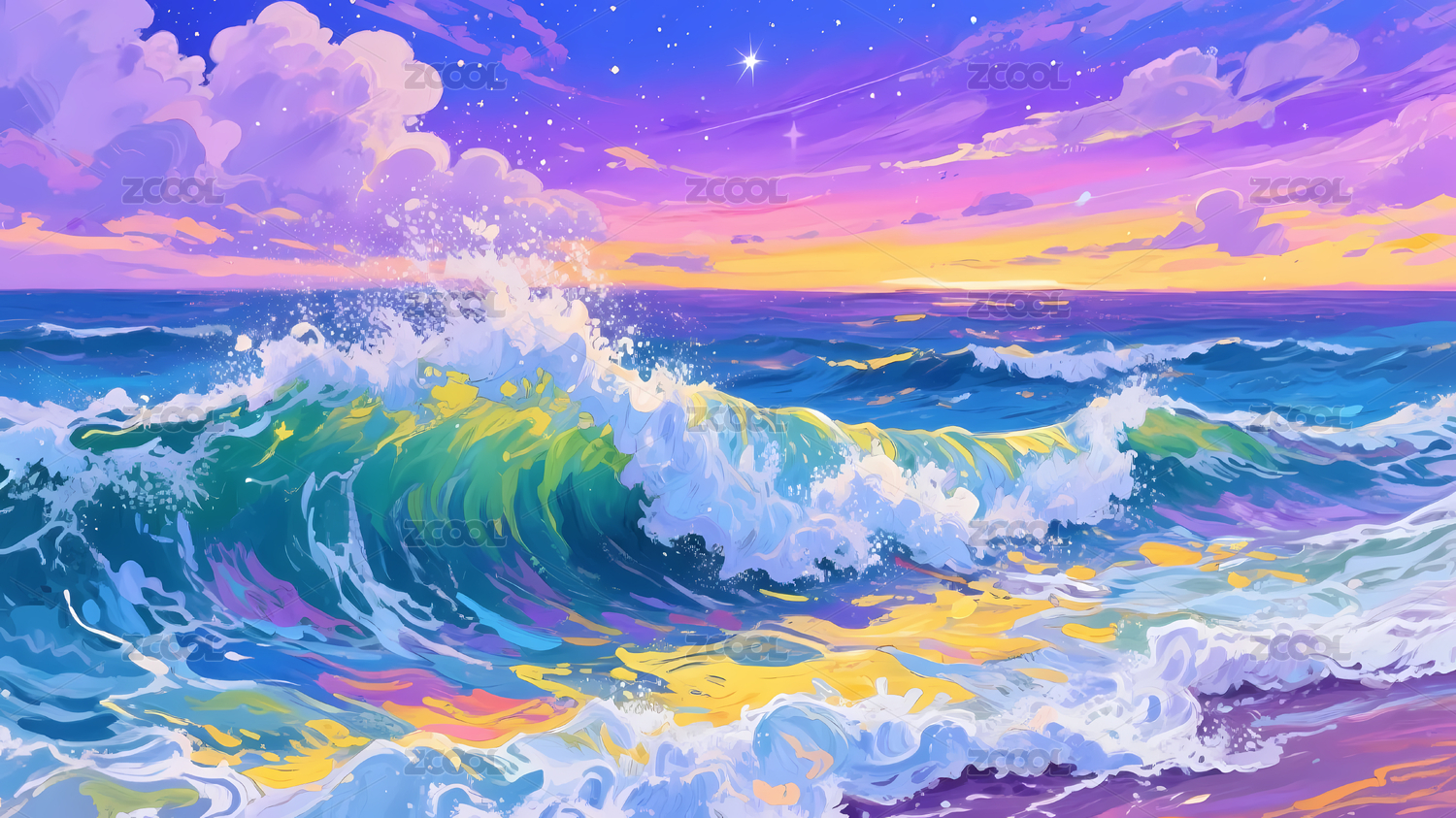 立夏节气海边冲浪插画,夏天海浪户外活动场