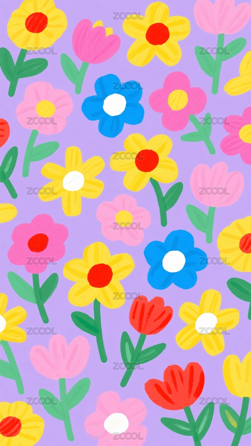 蓝色,黄色,白色,红色,生机,花卉,小花,深绿,和谐,活力