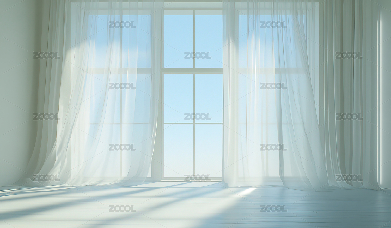 极简白窗薄纱微风室