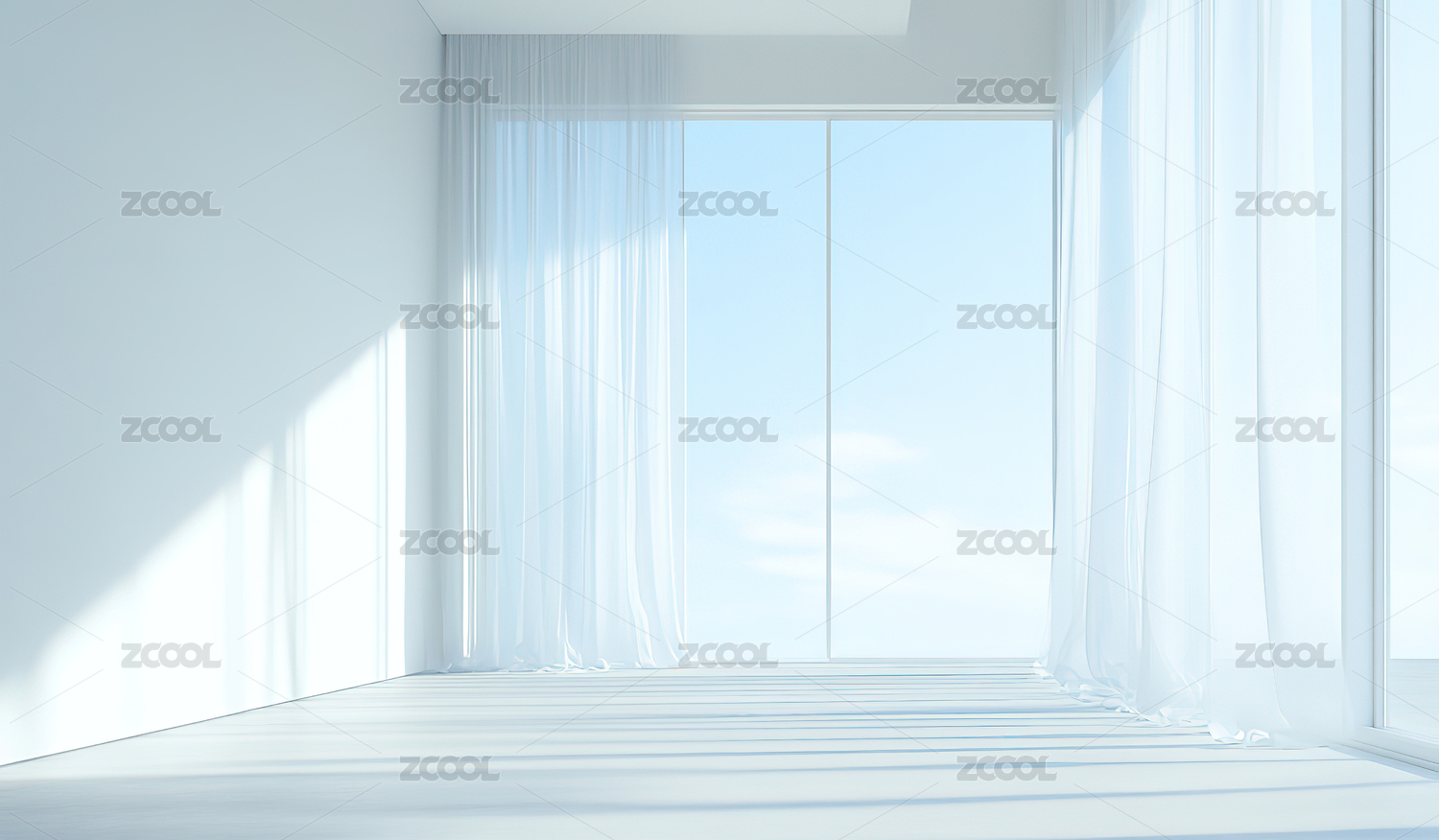 明亮通透窗帘微风房间