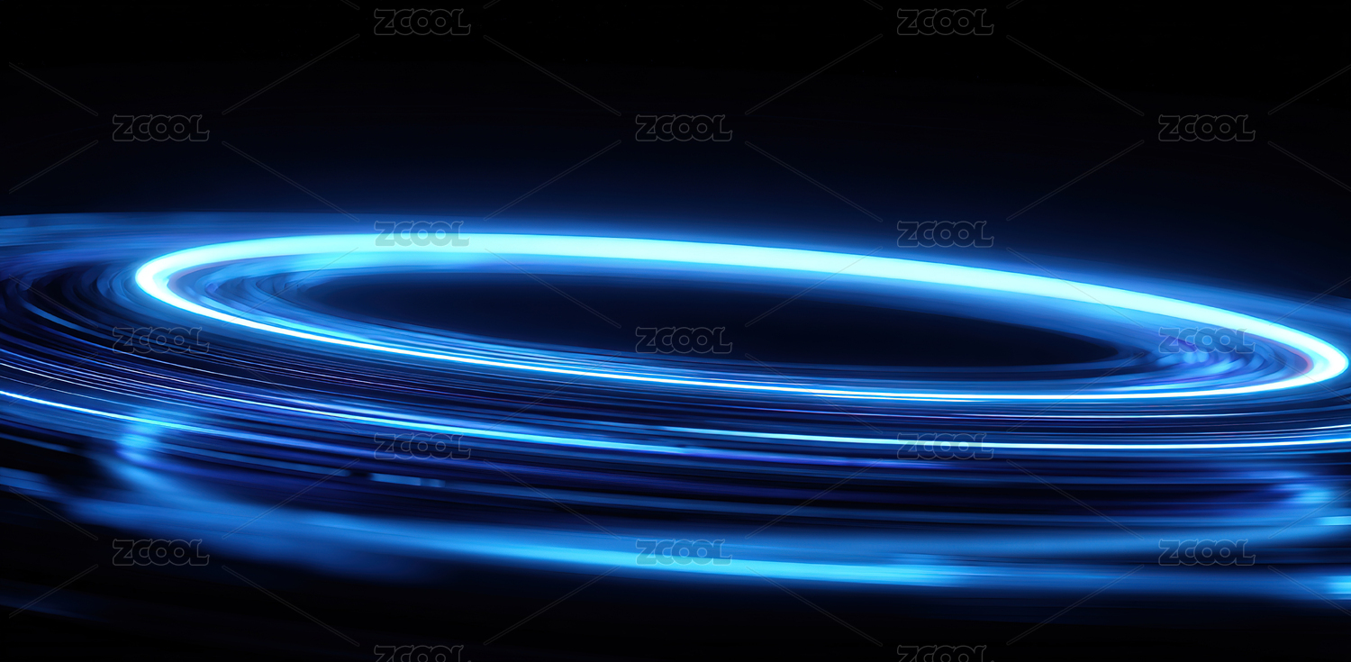 蓝色霓虹光带的科技感设计