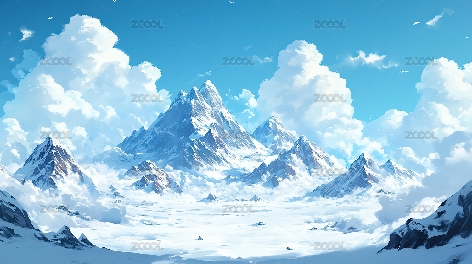 蓝天白云雪山户外场景壁纸