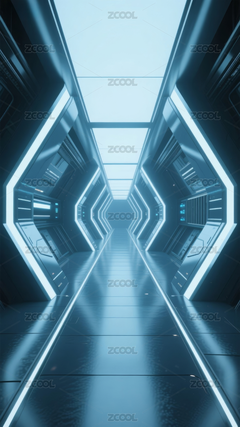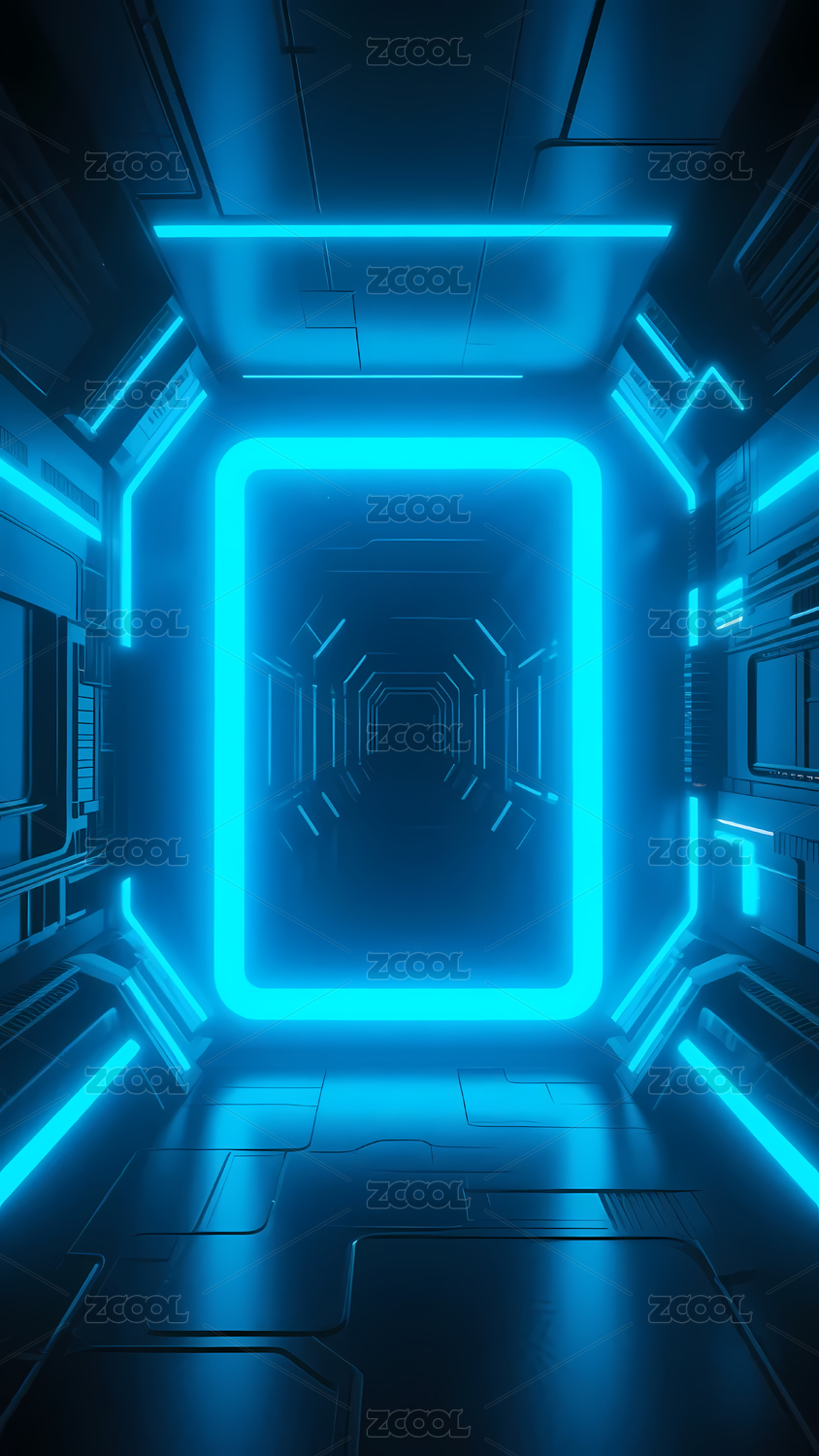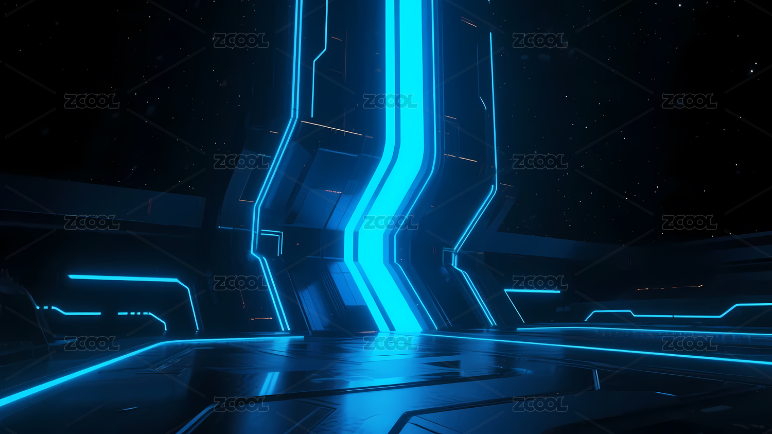 深色,科技,抽象,线条,几何,对称,灯光,未来感,霓虹,蓝白