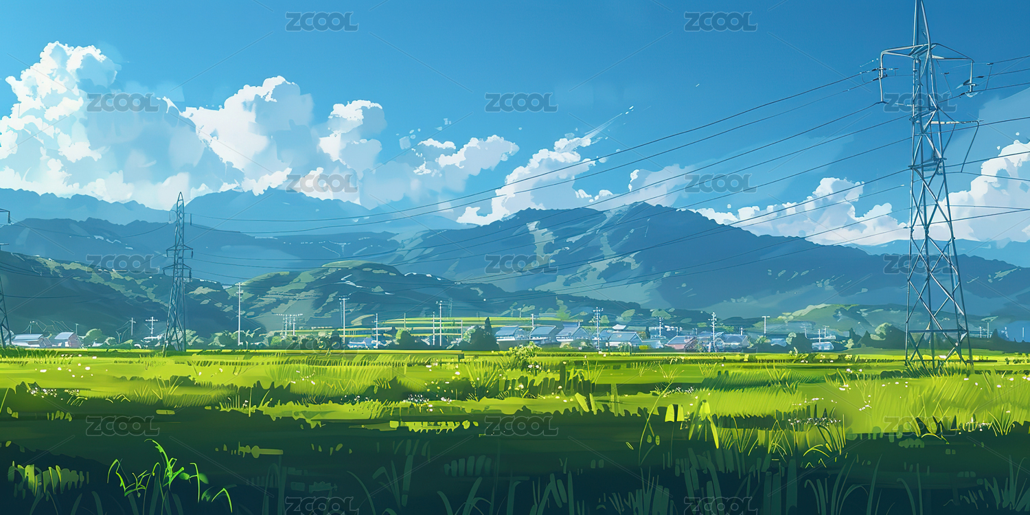 晴空下的田园插画