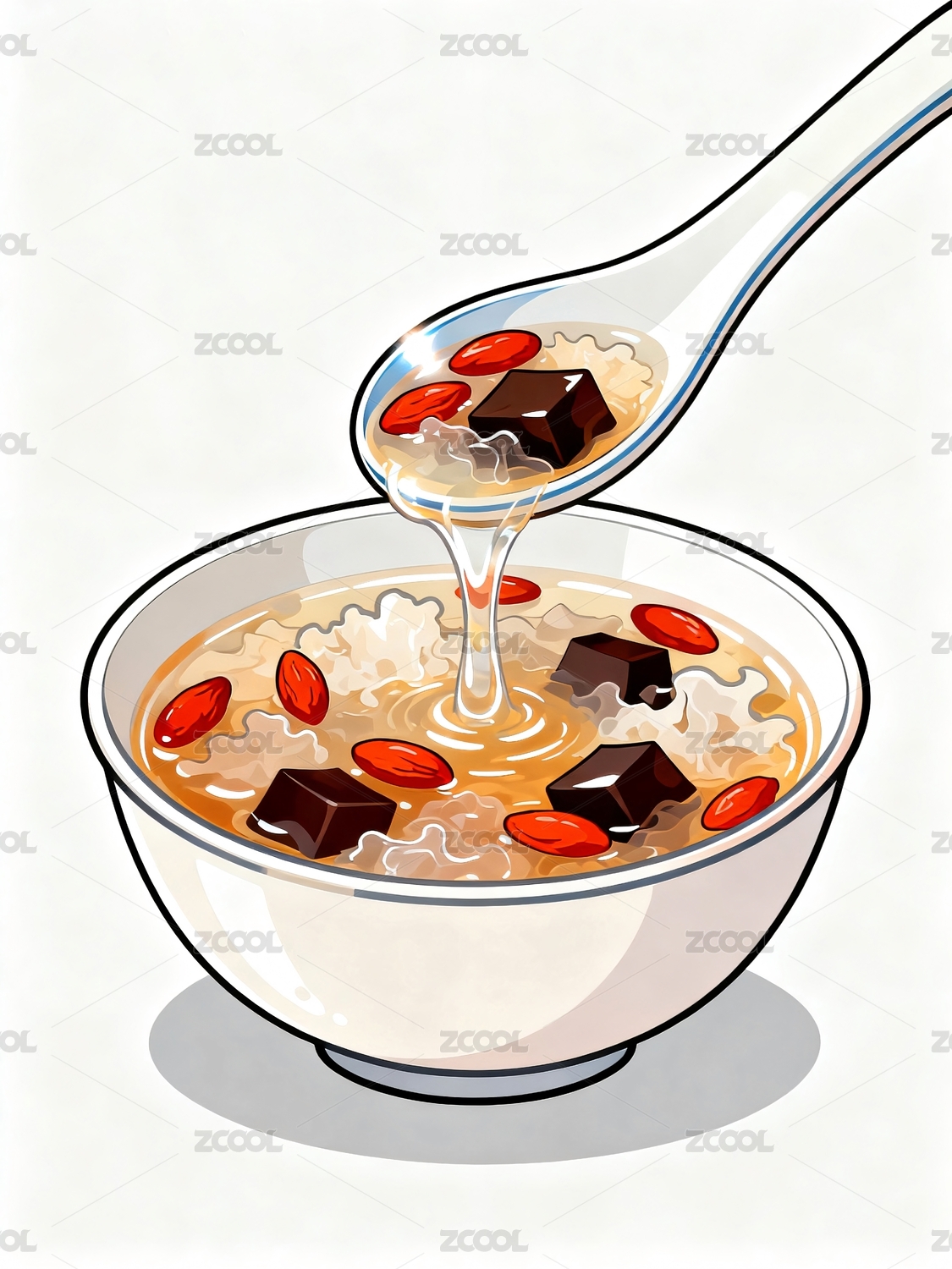 食物,白色,餐具,圆碗,碟子,勺子,线条,红色,饮品,液体