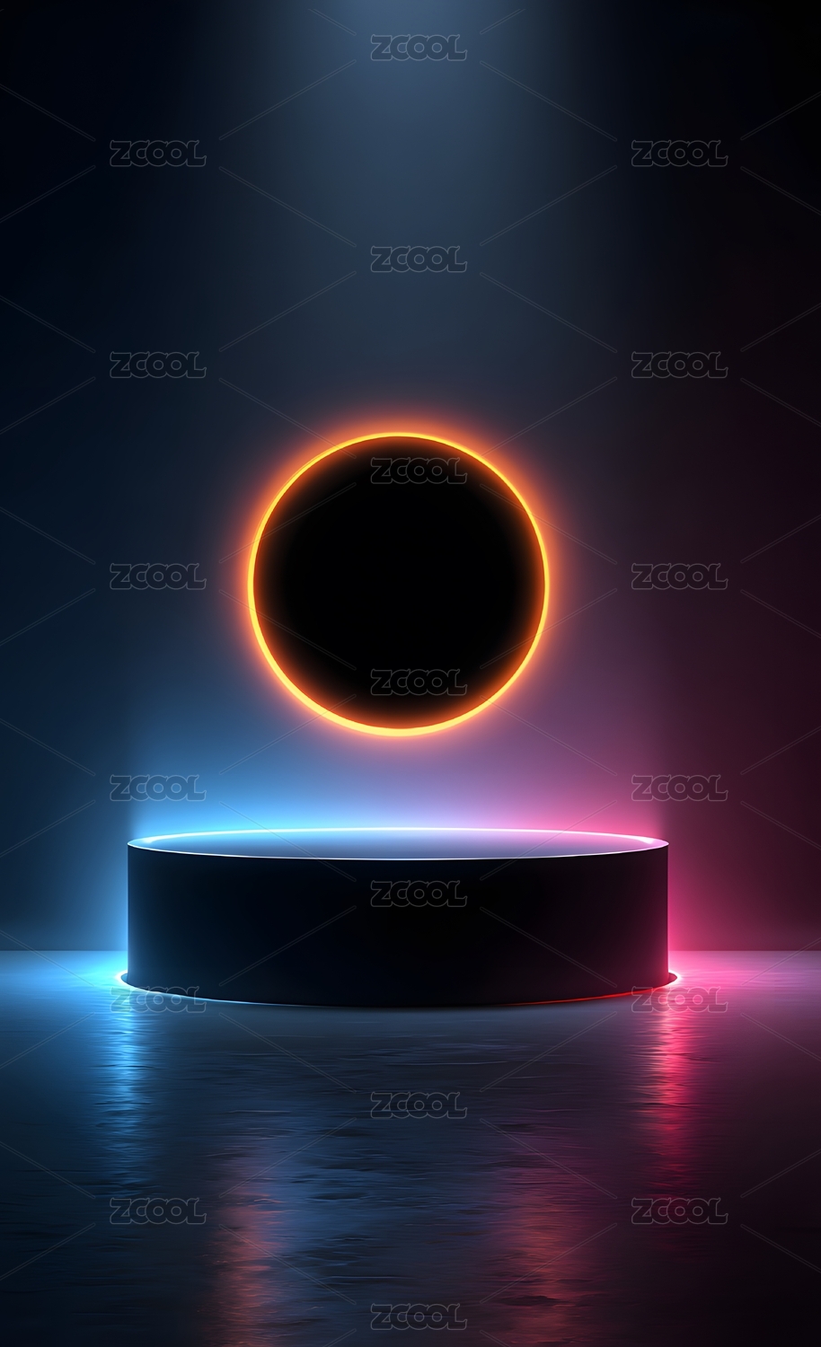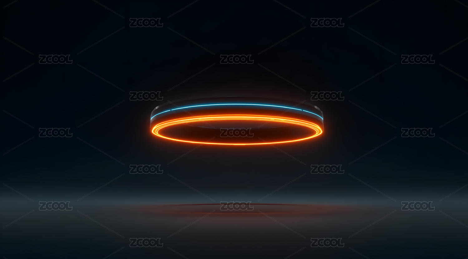 数码蓝橘色圆形霓虹灯抽象图形海报背景