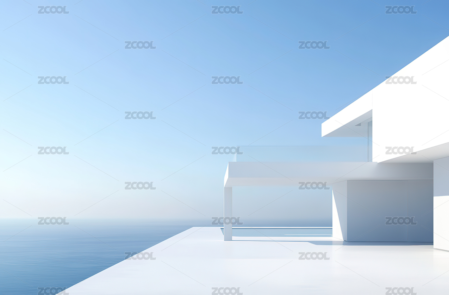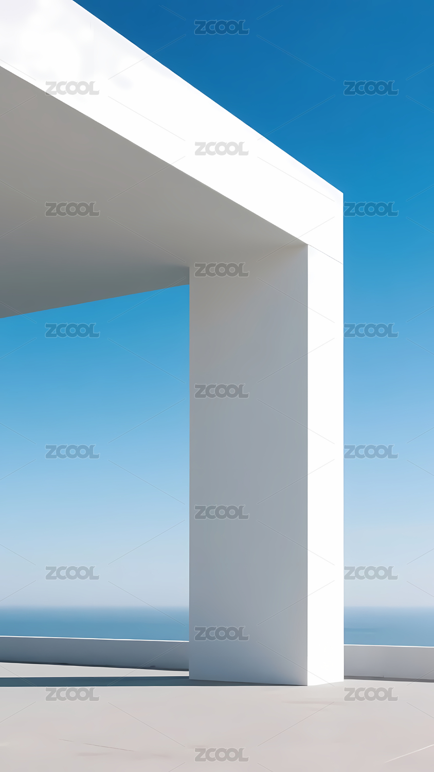 现代白色建筑与海天背景