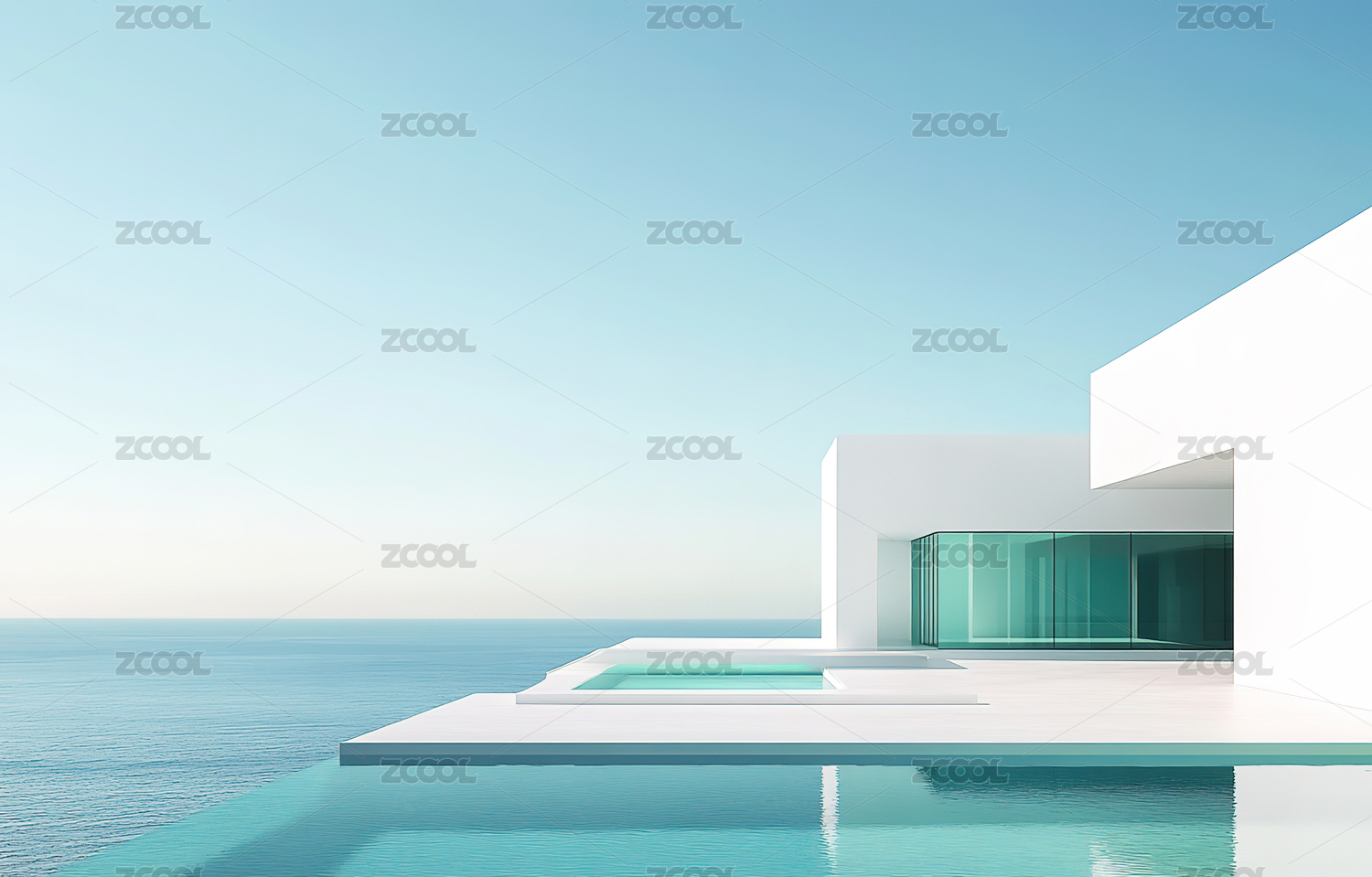 现代白色建筑与海天风光