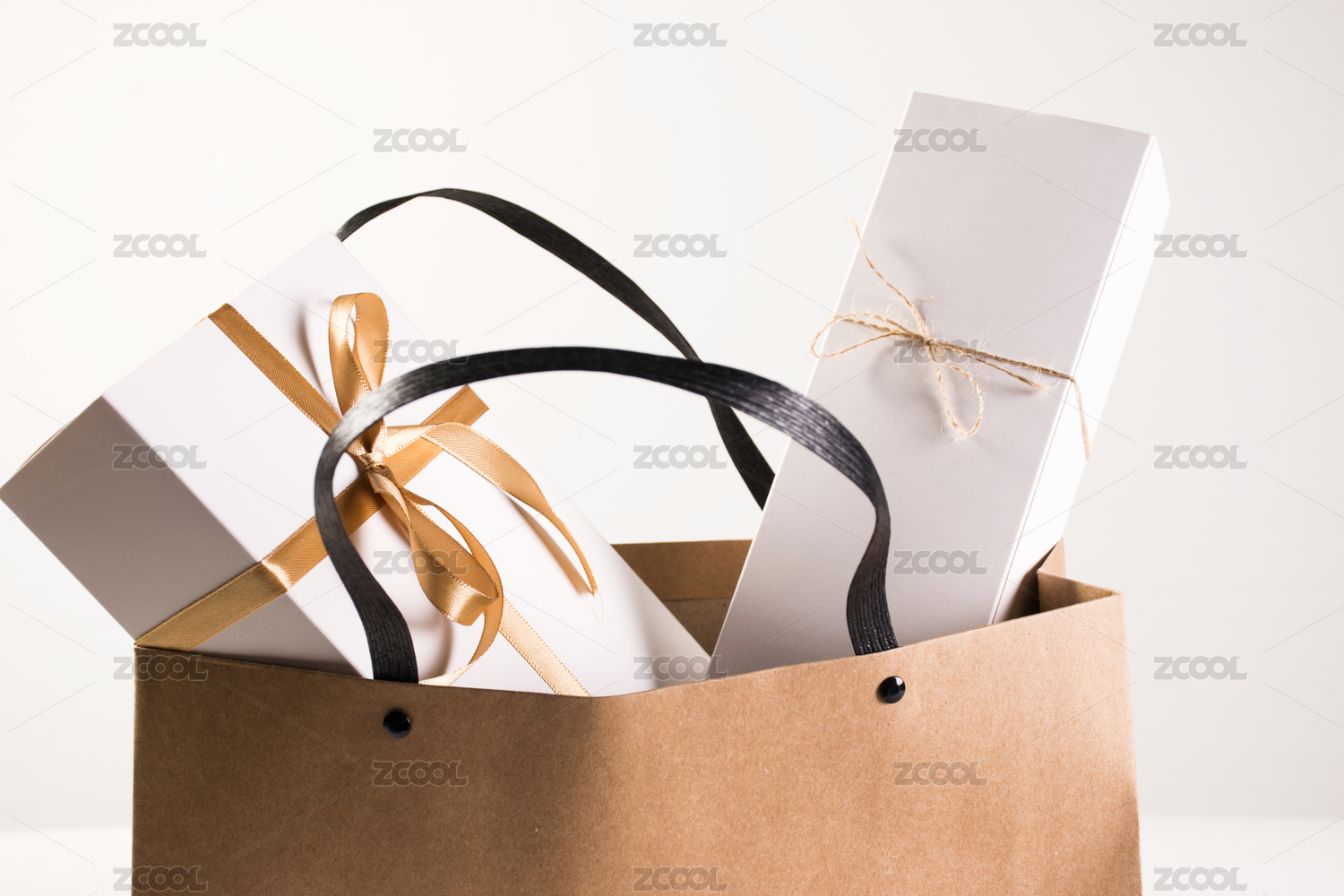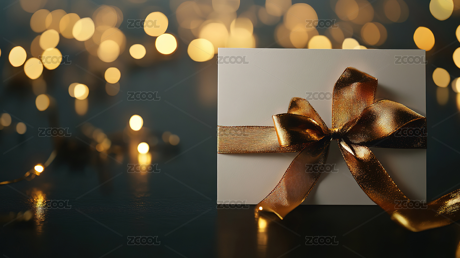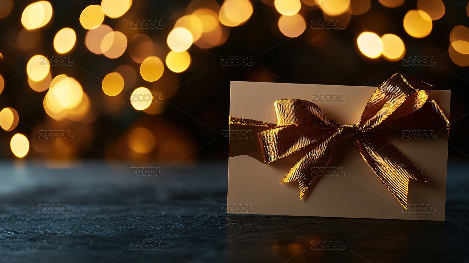灯光照射下的桌子上的圣诞礼物特写镜头