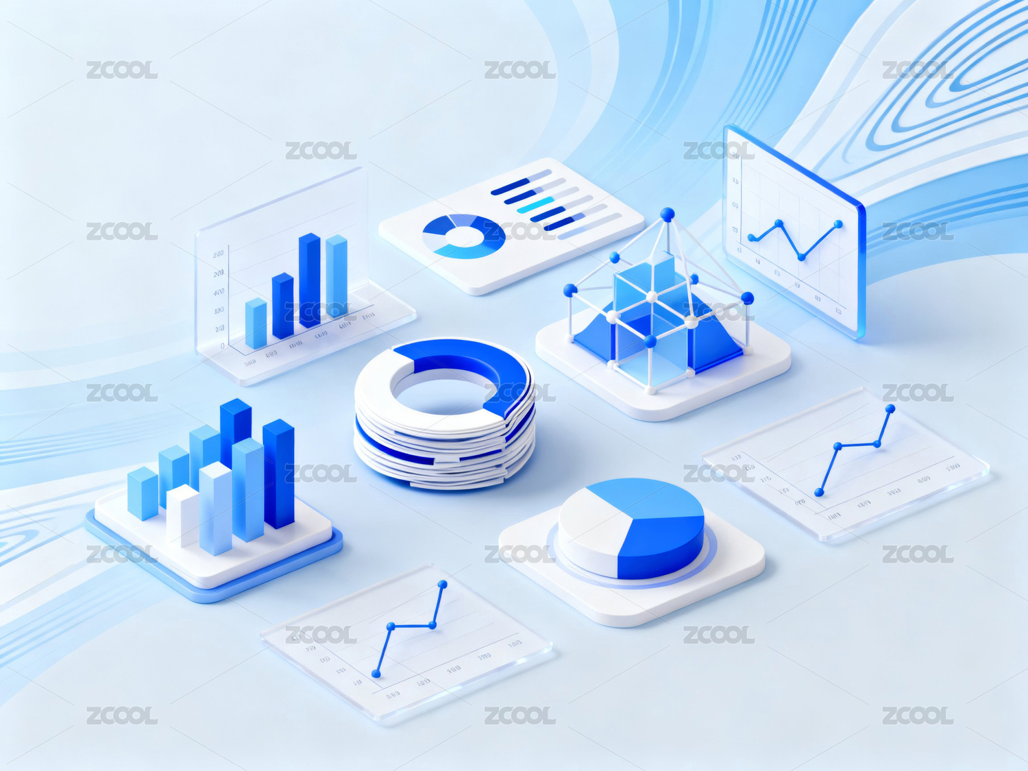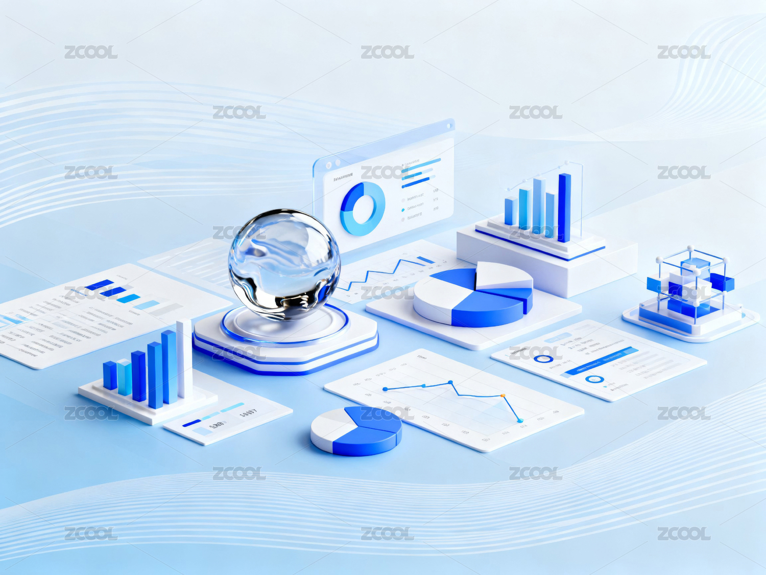 蓝色数据图表展示