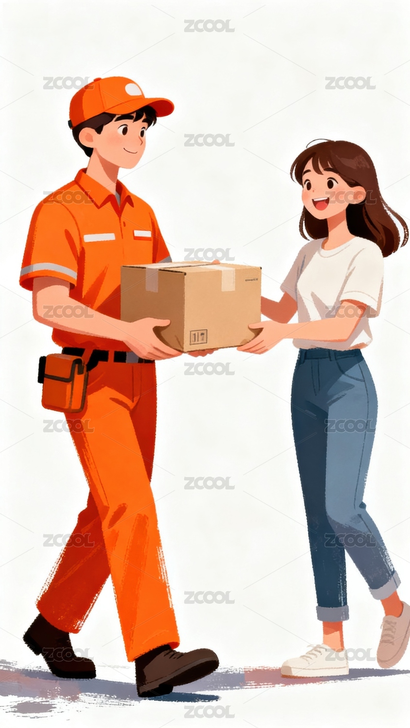 快递员,包裹,女孩,配送,签收,快递,微笑,服务,物流,送货上门