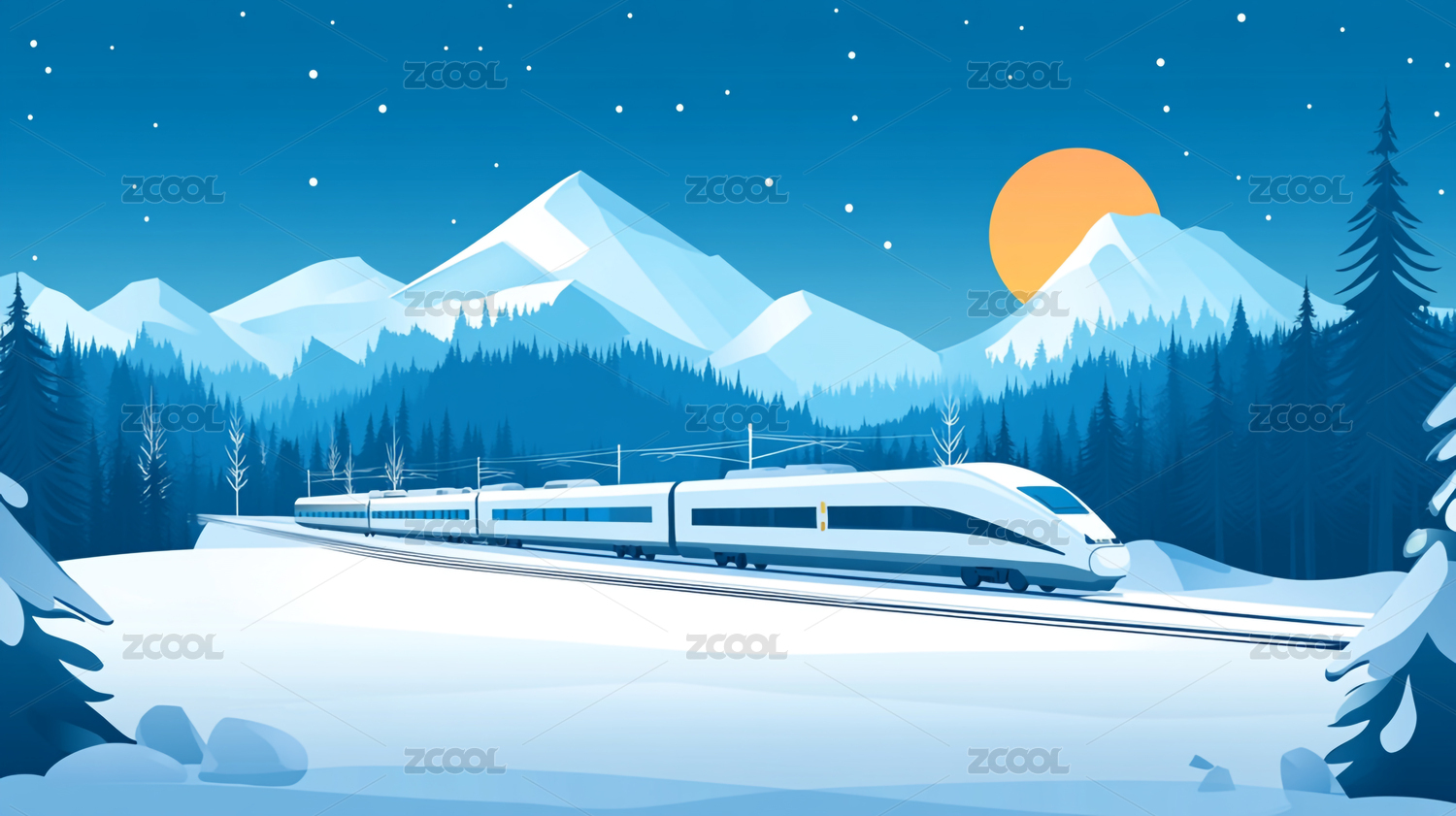 高铁,雪山,冬季,高速列车,雪景,林海,雪原,现代,交通,背景