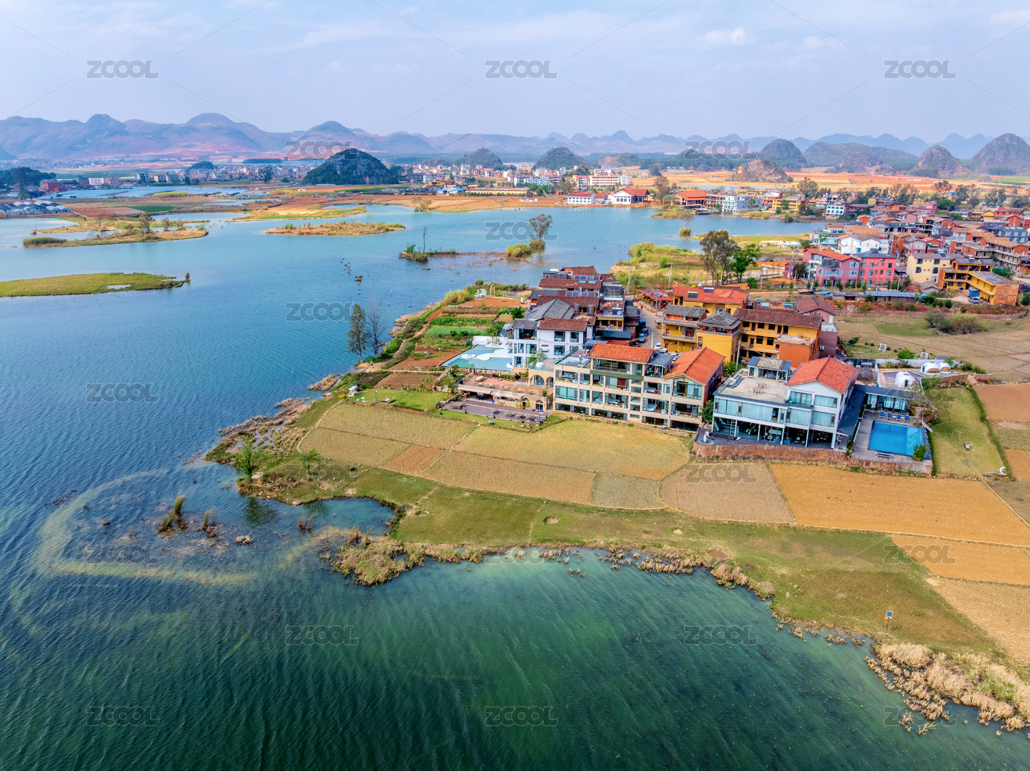云南普者黑村航拍风光