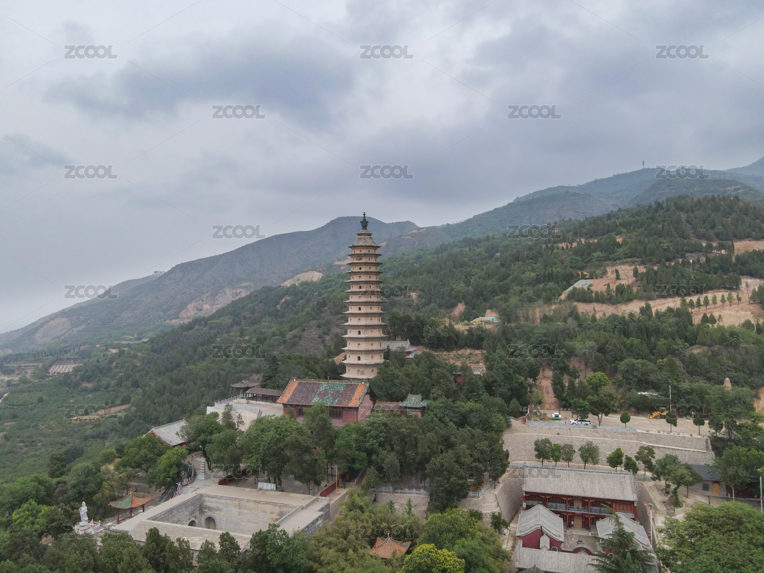 俯瞰山西太原太山龙泉寺舍利塔秋日风光