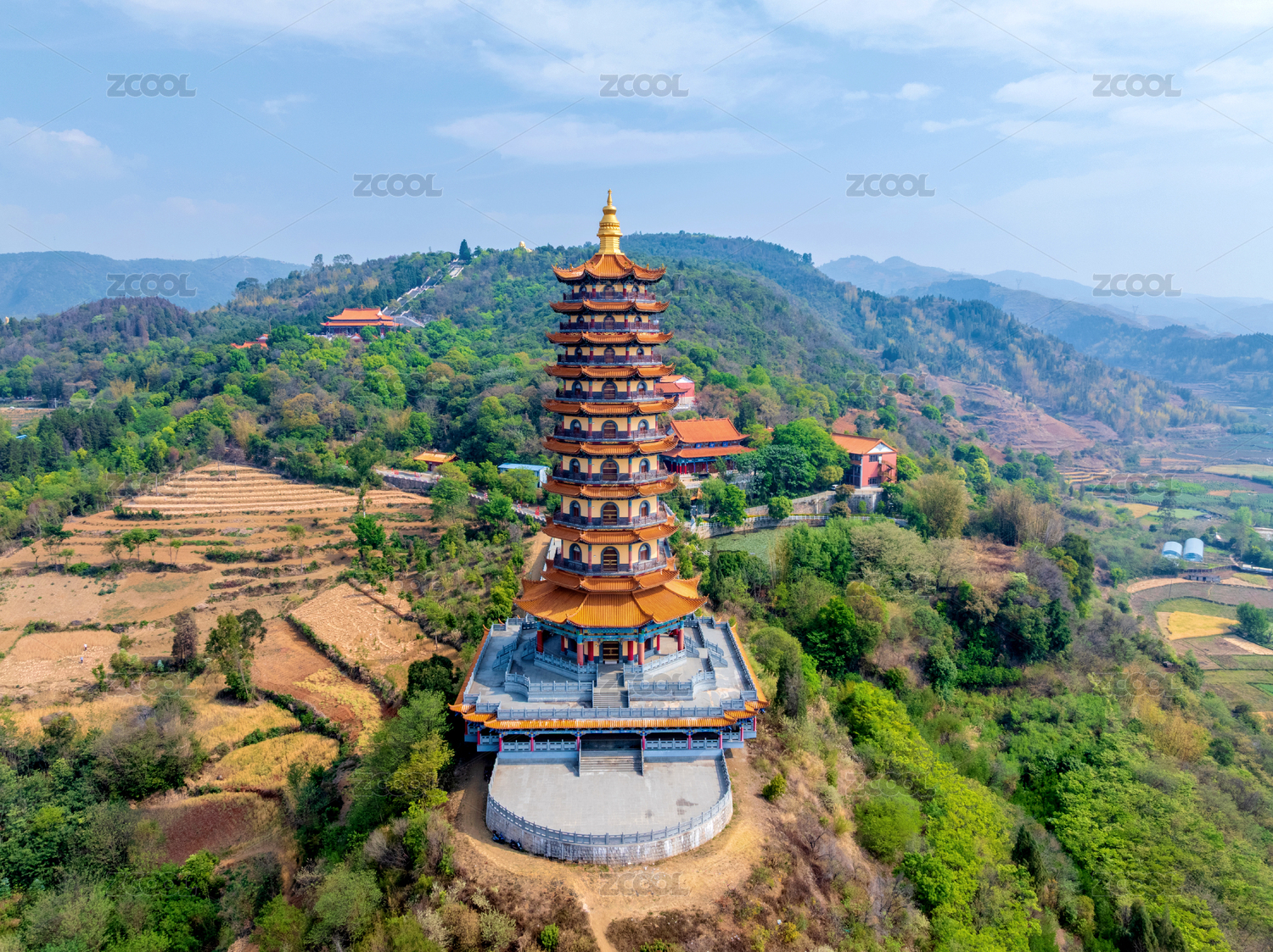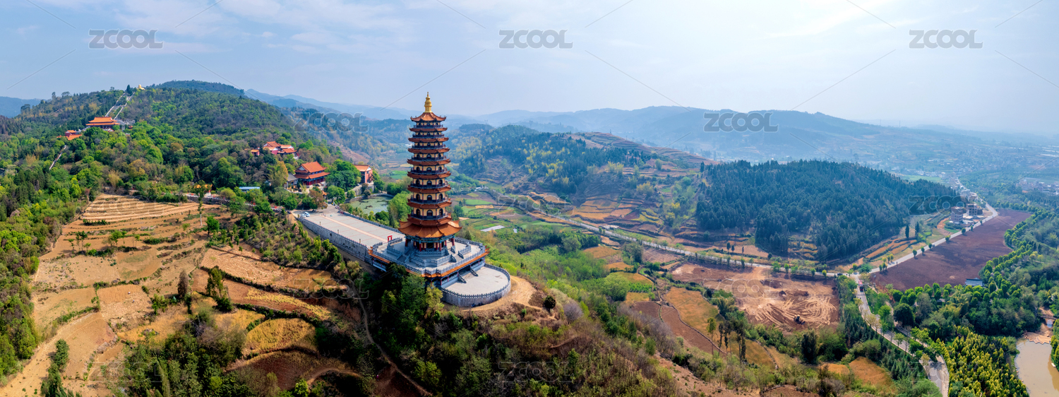 中国云南红河弥勒锦屏山弥勒寺龙华宝塔航拍