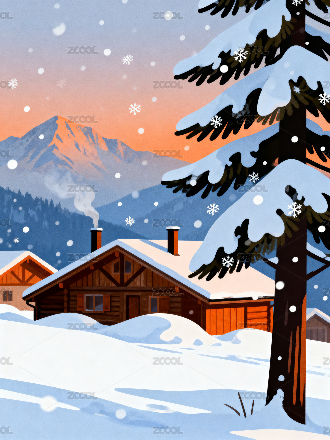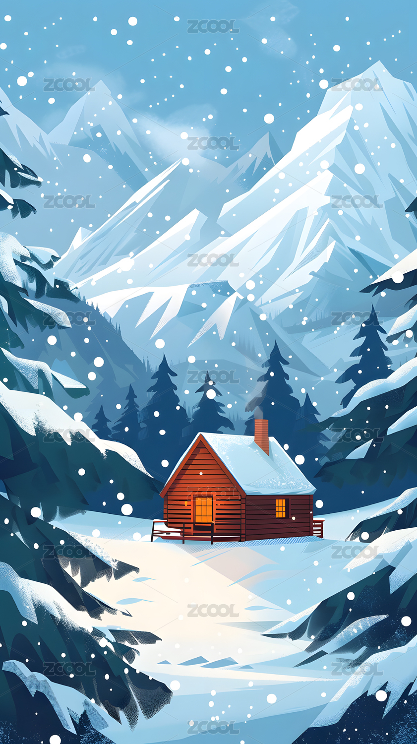 雪夜木屋插画