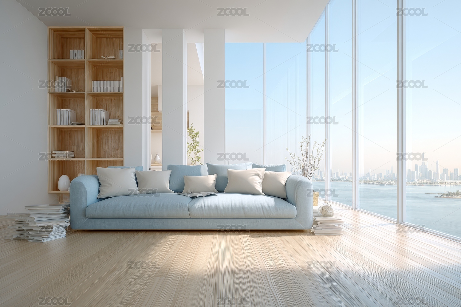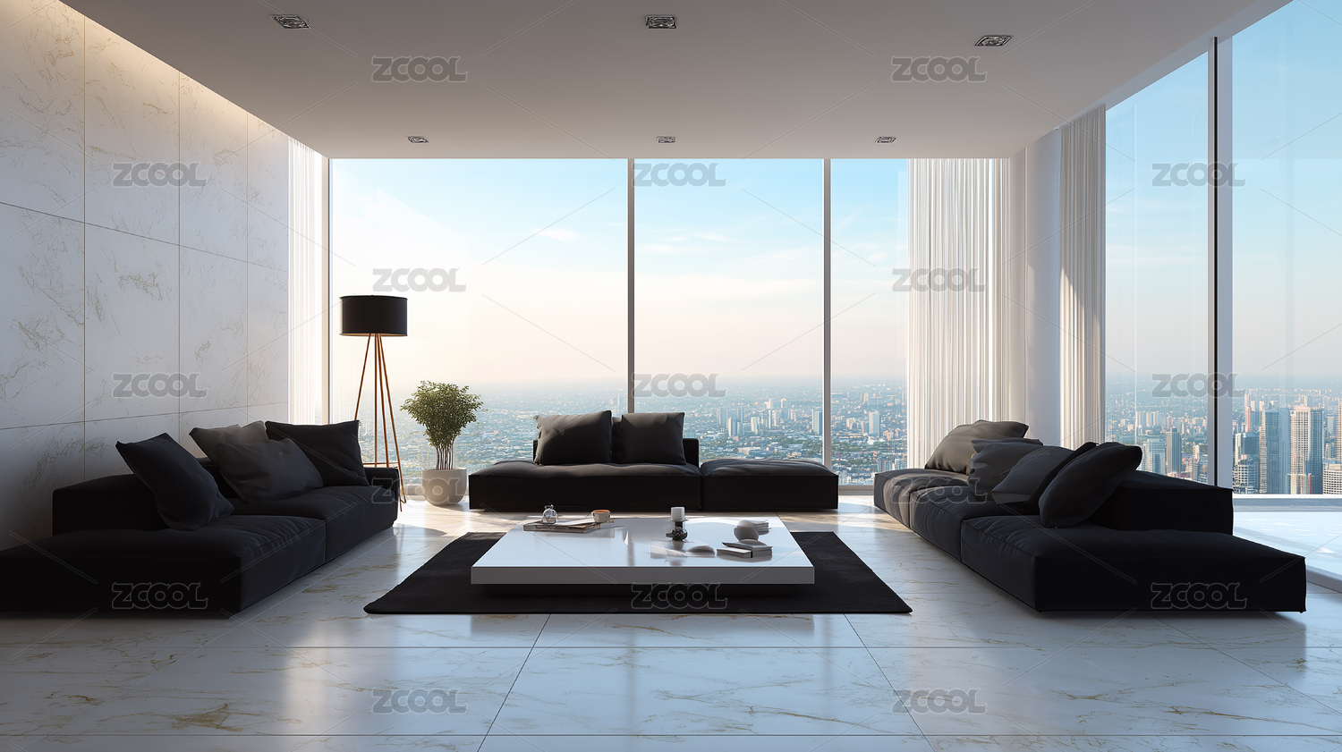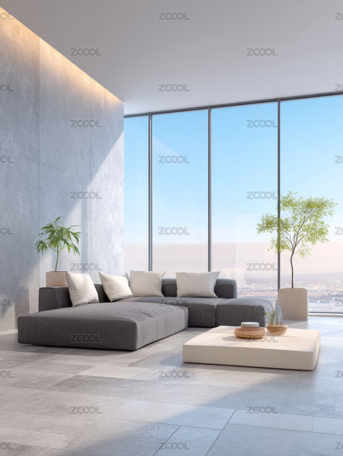 客厅,沙发,落地窗,木质,茶几,绿植,灰色调,现代,风格,室内